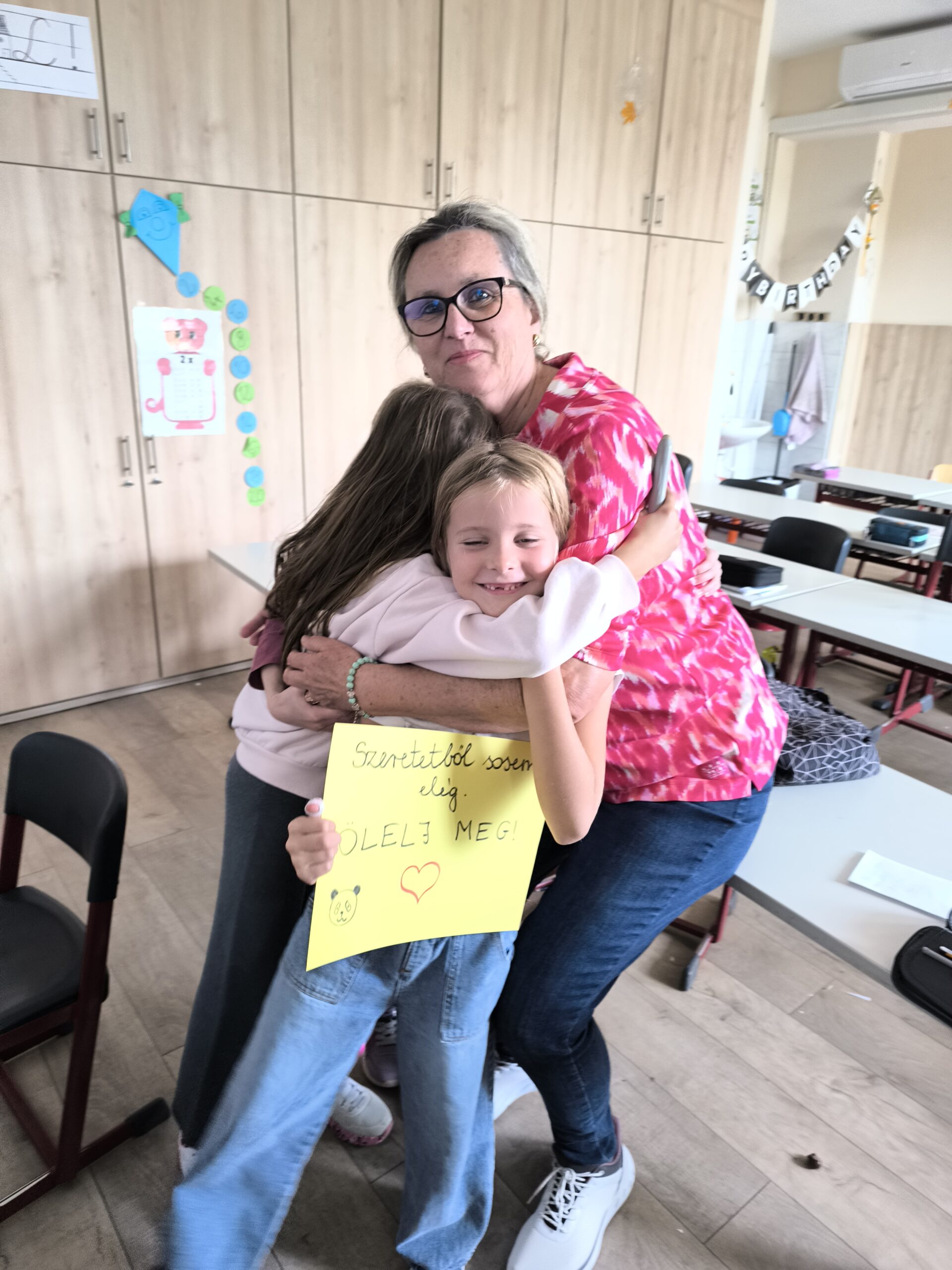 Később öleléseket adtunk egymásnak, majd ellátogattunk más osztályokba és tanárainkhoz is, hogy megajándékozzuk őket egy kedves öleléssel és mosollyal.