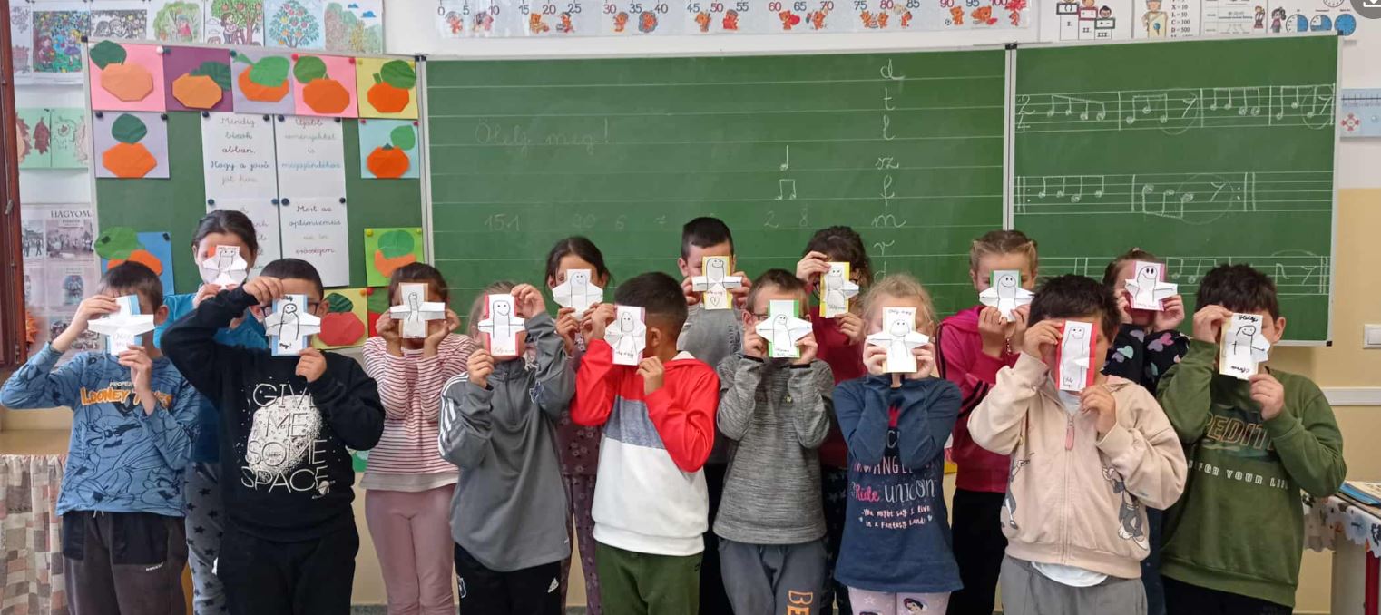 Ebben a hónapban 3 lehetőséget gyúrtunk egybe a boldogság órán: október 15-én , az ölelés világnapja alkalmából elkészítettük az origami ölelő figurát/kártyát. Közben elmondtuk az optimizmus mondókát, amely napok óta díszíti a táblánkat. Az ölelő kártyát ebéd után a gyerekek felavatták az iskolai közösségben, több ölelést is begyűjtve.
