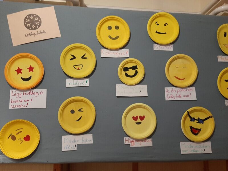 A gyerekek mosolygós tányérokat festettek, majd motíváló idézeteket gyűjtöttek.
