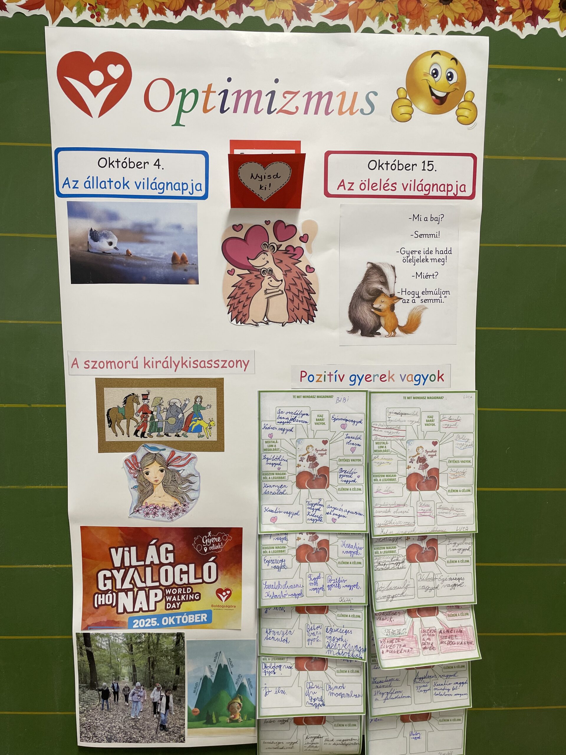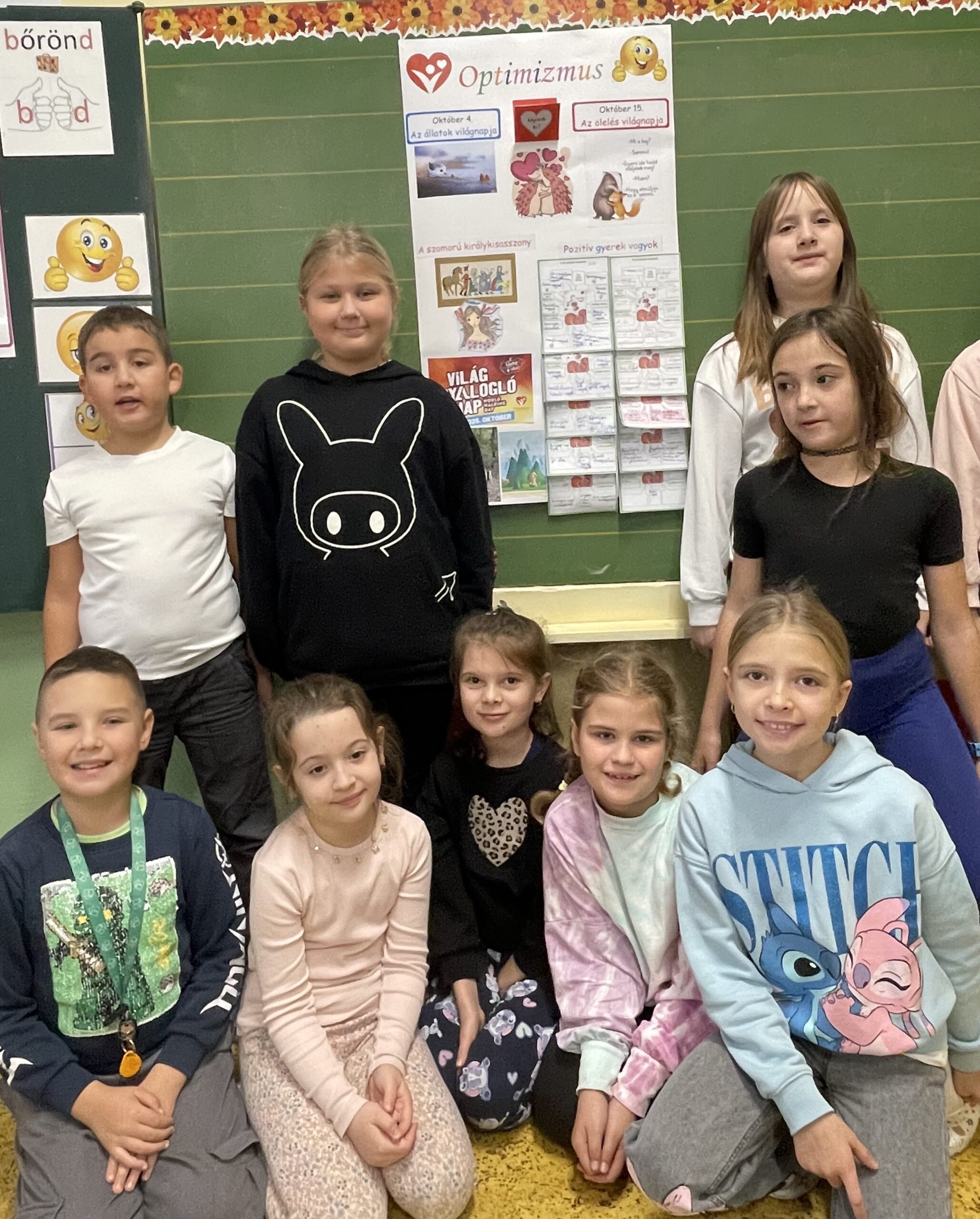 Sokat beszélgettünk arról, mit is jelent az optimizmus, és hogyan segíthet abban, hogy vidámabban és reménytelibben éljük a mindennapjainkat. Feldolgoztuk A szomorú királykisasszony című mesét, ami megtanította nekünk, hogy a boldogság nem attól függ, mink van, hanem attól, hogyan gondolkodunk. Ha észrevesszük a jót, hálásak vagyunk és kedvesek másokhoz, akkor mi is vidámabbak leszünk.