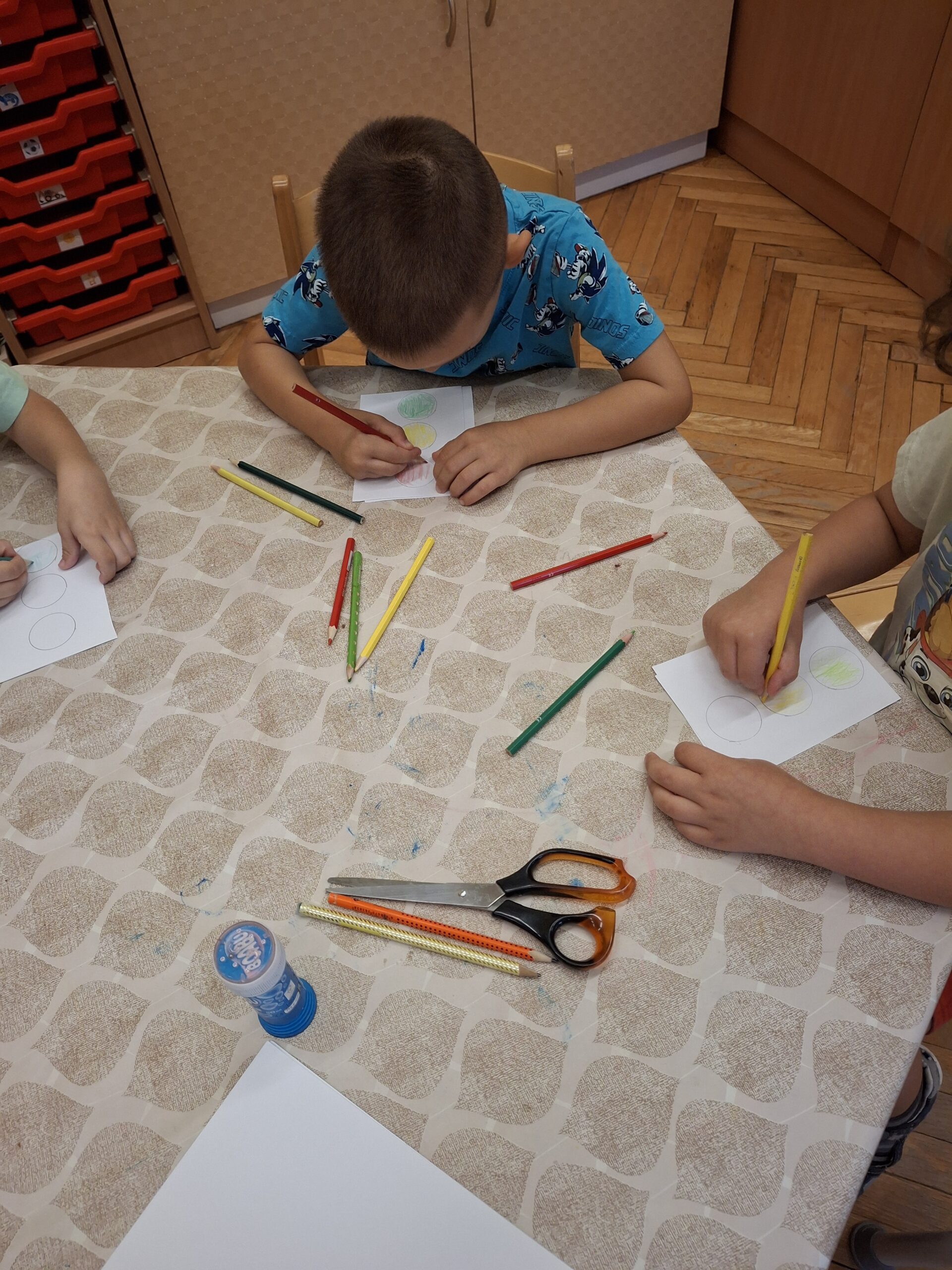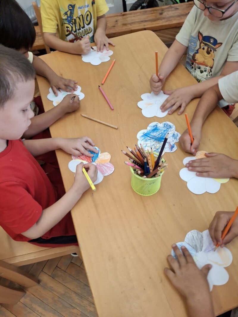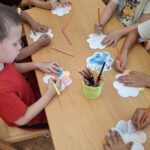 Miután kijátszották magukat, egyszer csak Boldog Dóri megjelent, és elmesélte Tódi törpe történetét. Megbeszéltük a történetet, mese végén mindenki készíthetett egy szemüveget, és azt láthatta a varázsszemüveg üvegén, ami nagyon szép és pozitív számára.