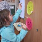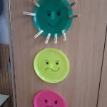 A foglalkozás végén mindenki leírhatta, vagy lerajzolhatta egy varázsgömbbe a vágyait, aminek megvalósulásában reménykednek. A foglalkozás lezárásaként újra megkérdeztem, hogy most hogy érzik magukat a gyerekek, de nem mondhatták el,hanem az arcokat ábrázoló falhoz mentek és a csipeszeket áthelyezhették oda ahová akarták. A végeredmény számomra megnyugtató volt.