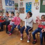 Az óra indító körében minden gyerektől megkérdeztem,hogy hogy érzi magát, milyen volt a napja. Miután mindenki elmondta egy vidám,kevésbé vidám és egy szomorú arcot ábrázoló tányéron csipesszel is jelezték az aktuális állapotukat. Volt három tanuló, akik a szomorú archoz tették a csipeszt, egy pedig a kevésbé vidám archoz. Ezután a gyerekeknek elmondtam,hogy a mai foglalkozáson az a célom, hogy mindenki mosolyogjon és elmúljon a rosszkedve. Bevezetésként nevetésversenyt játszottunk, ahol az egyik kislányt egyáltalán nem tudták a gyerekek megnevettetni.(Ő a szomorú archoz tette a jelét). Az örömünket tovább fokozta a Szomorú királykisasszony meséje, amelyet először felolvastam, majd a mesét eljátszottuk. A mi szomorú kislányunk volt a királykisasszony, aki a látottakon már-már elmosolyodott. De vajon miért lehetett szomorú a királylány?-kérdeztem a gyerekektől. – Mert senki nem akarta elvenni feleségül, beteg volt, lehet,hogy csúnyának látta magát, unatkozott – válaszolták. Akkor most rajtatok a sor!- mondtam. A tükörjátékban mindenki elmondhatja,hogy mi az ami szép benne. Ez két gyereknek nem ment, így megkértem a többieket, hogy mondják el ők a társuk erősségeit.