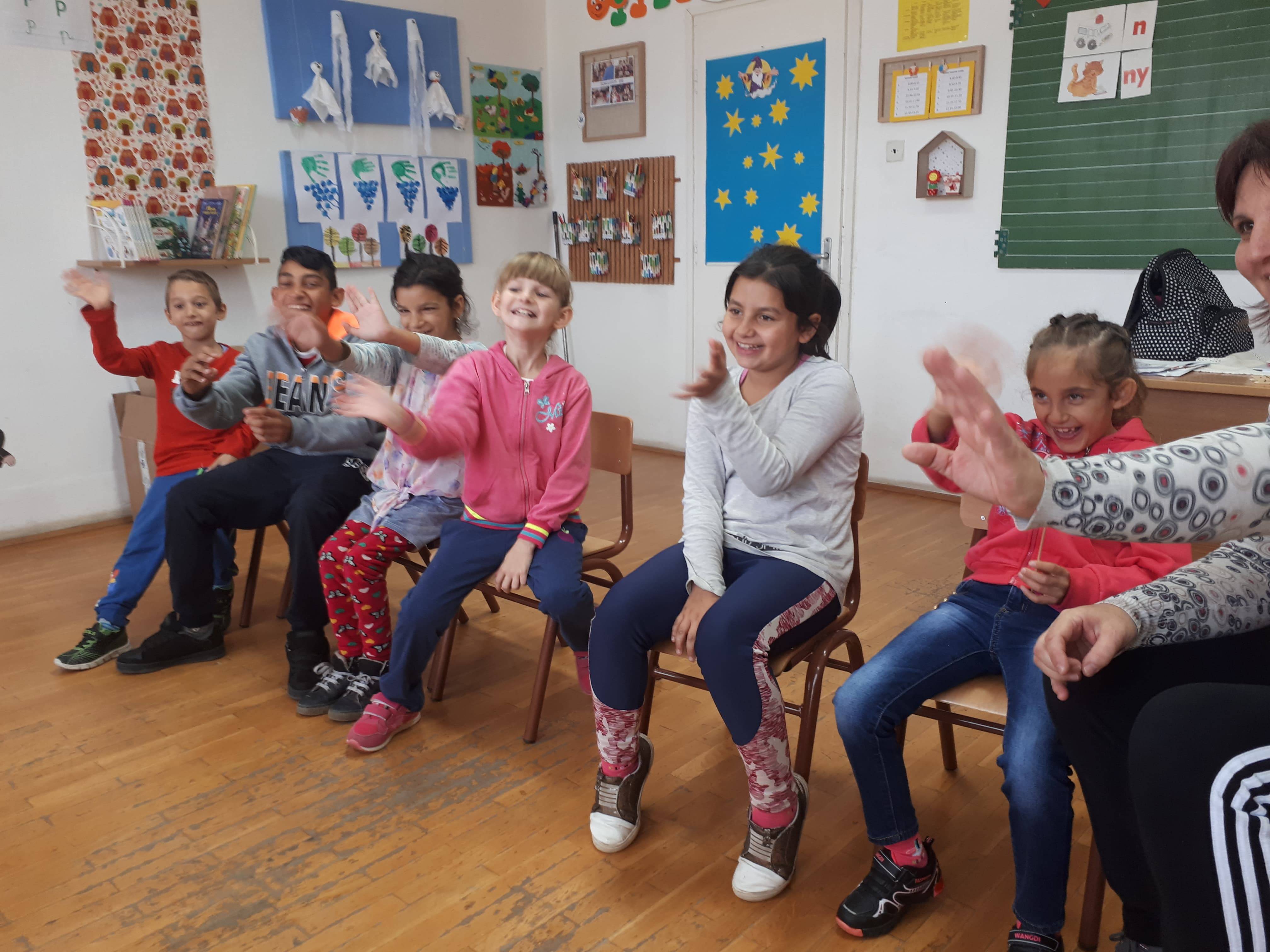 Az óra indító körében minden gyerektől megkérdeztem,hogy hogy érzi magát, milyen volt a napja. Miután mindenki elmondta egy vidám,kevésbé vidám és egy szomorú arcot ábrázoló tányéron csipesszel is jelezték az aktuális állapotukat. Volt három tanuló, akik a szomorú archoz tették a csipeszt, egy pedig a kevésbé vidám archoz. Ezután a gyerekeknek elmondtam,hogy a mai foglalkozáson az a célom, hogy mindenki mosolyogjon és elmúljon a rosszkedve. Bevezetésként nevetésversenyt játszottunk, ahol az egyik kislányt egyáltalán nem tudták a gyerekek megnevettetni.(Ő a szomorú archoz tette a jelét). Az örömünket tovább fokozta a Szomorú királykisasszony meséje, amelyet először felolvastam, majd a mesét eljátszottuk. A mi szomorú kislányunk volt a királykisasszony, aki a látottakon már-már elmosolyodott. De vajon miért lehetett szomorú a királylány?-kérdeztem a gyerekektől. – Mert senki nem akarta elvenni feleségül, beteg volt, lehet,hogy csúnyának látta magát, unatkozott – válaszolták. Akkor most rajtatok a sor!- mondtam. A tükörjátékban mindenki elmondhatja,hogy mi az ami szép benne. Ez két gyereknek nem ment, így megkértem a többieket, hogy mondják el ők a társuk erősségeit.