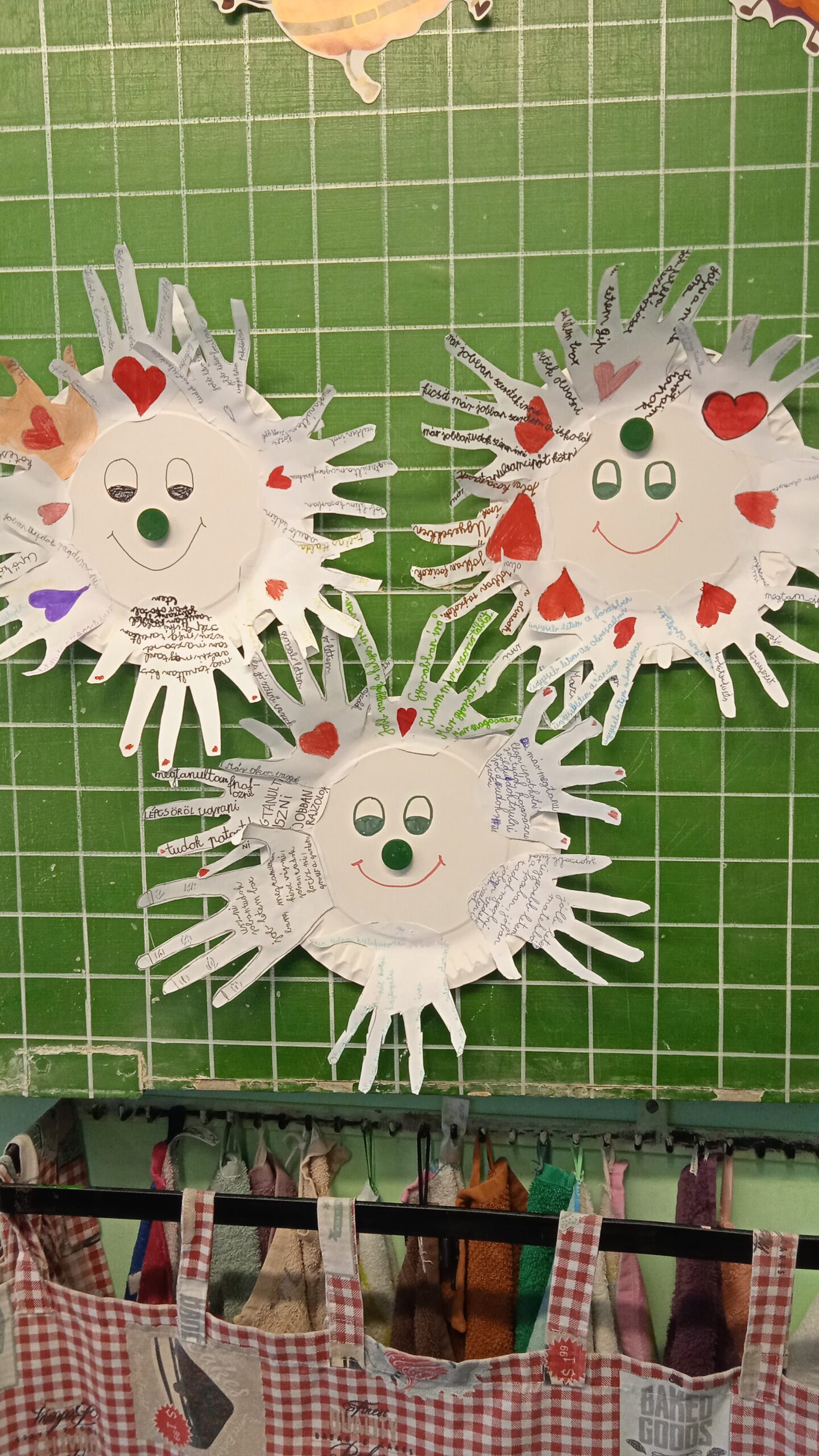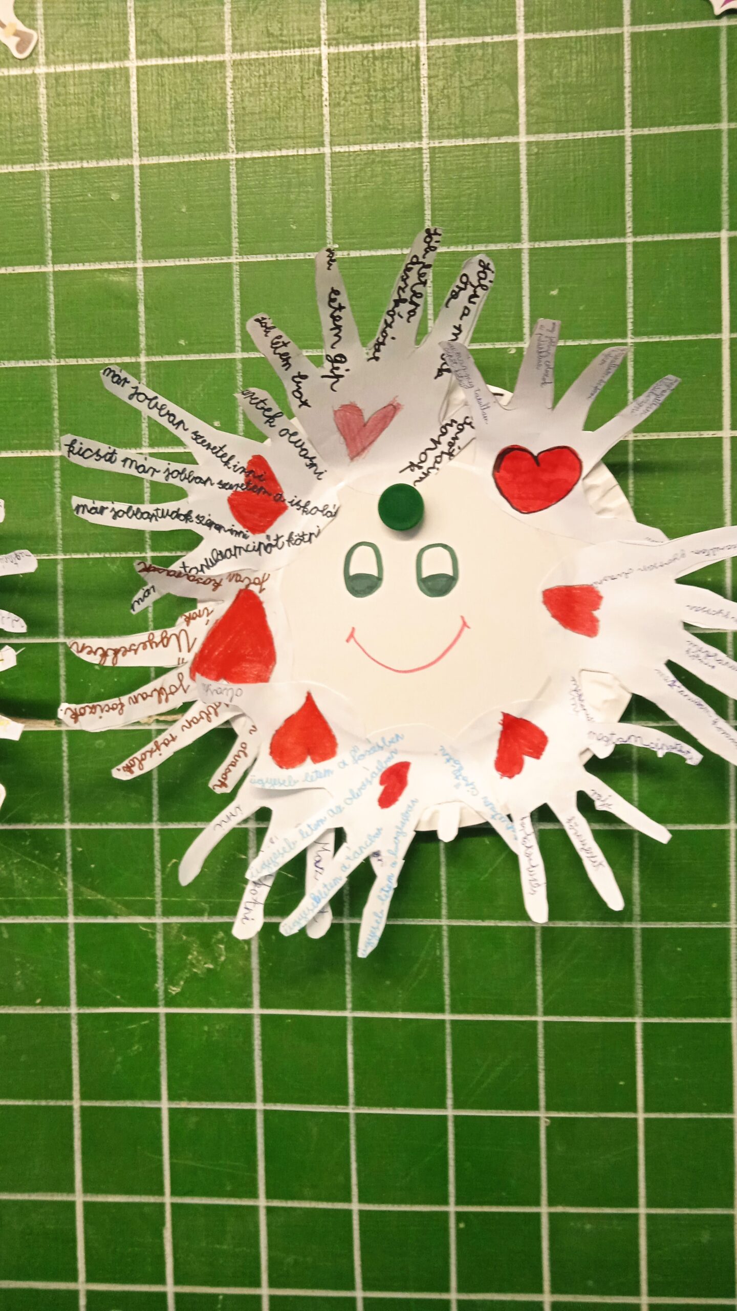 Három csoportban dolgoztak a gyerekek. Közösen készítették el a napocskákat.