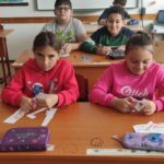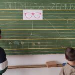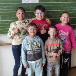 Ezután mindenki készített egy saját optimista szemüveget magának és az óraközi szünetben a folyosóra is kimerészkedtünk, felnőttel gyerekek csodálatára.