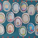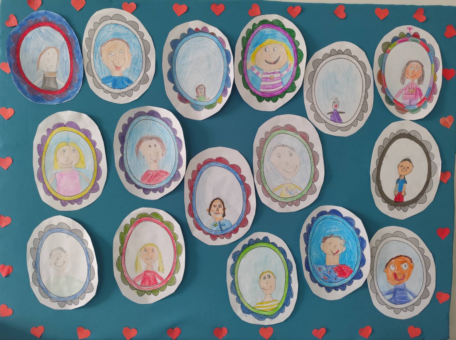 Elmondtuk az „Irka-firka” című lazító mondókánkat, majd mindenki elkészítette a saját tükörképét, melyek valóban színesre, vidámra sikerültek. 🙂