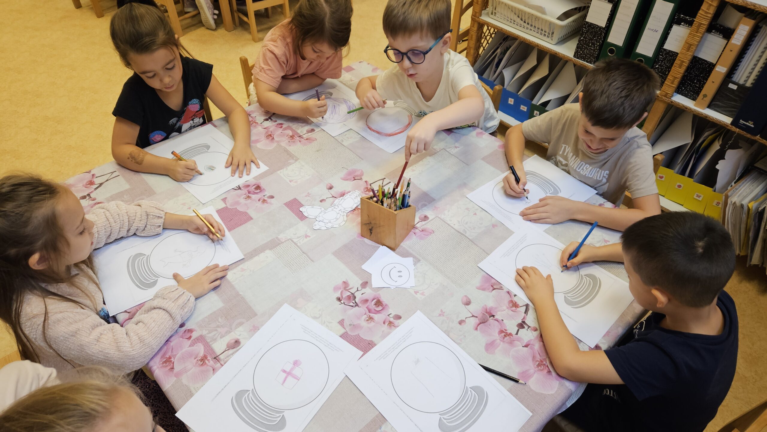 Boldog Dóra most egyik kedvenc meséjük közül hozott egyet: Bogyó és Babóca Nyári meséjét a Palacsintasütést. A mese után Bagdi Bella dalát hallgatva (Pozitív gyerek vagyok…) elkészítették a gyerekek a varázsszemüvegeket, illetve a varázsgömbbe lerajzolták, amit nagyon szeretnének, hogy valóra váljon.
