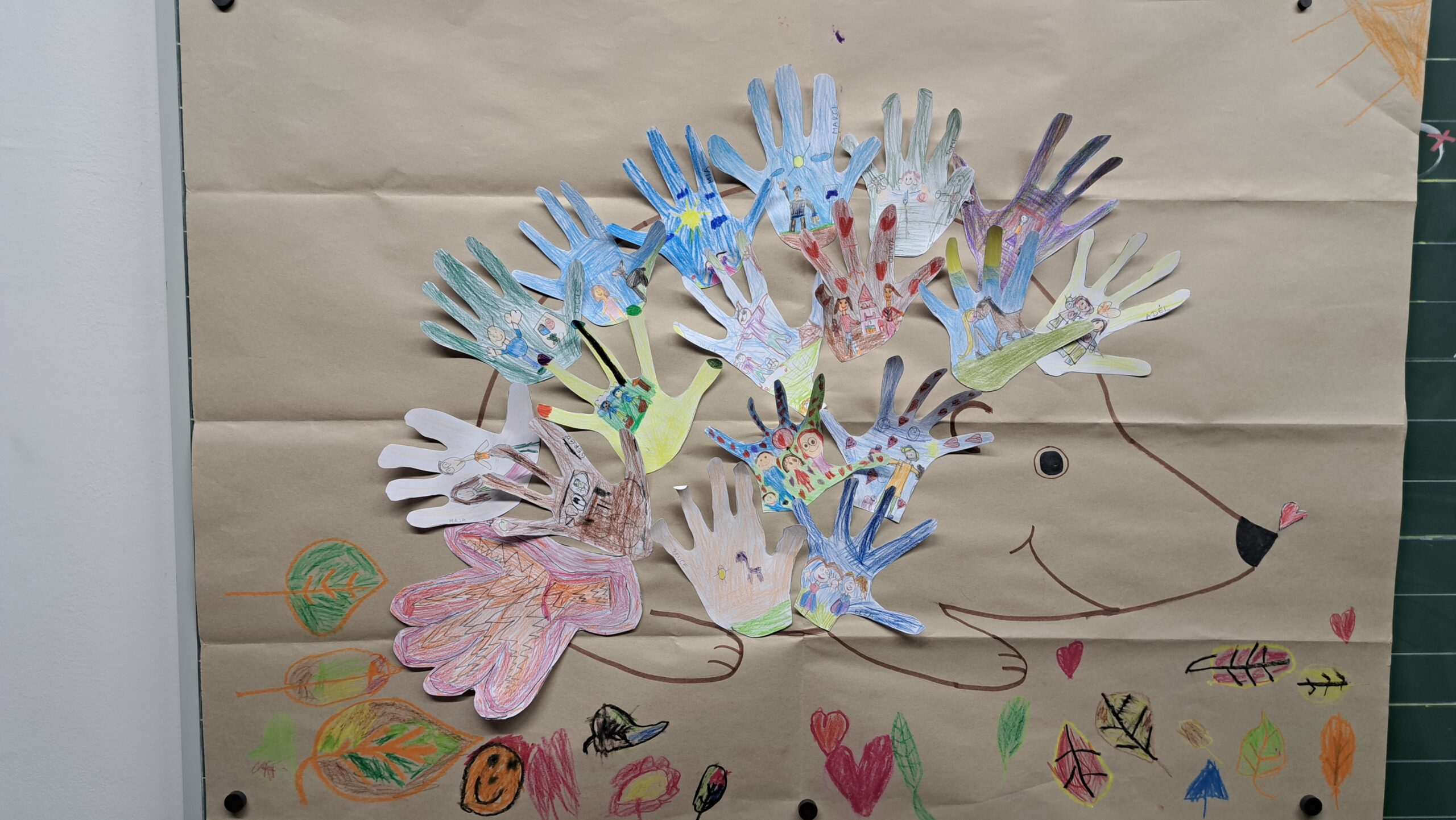 Az októberi Boldogságóra témája Az optimizmus gyakorlása volt. A ,, Bagoly” relaxációs gyakorlattal kezdtük a hangolódást. A témát A mesebeli kis szűcs című interaktív mese segítségével dolgoztuk fel. A gyerekek aktívan bekapcsolódtak a mesébe, szívesen meséltek a számukra „panaszos” majd a mese végén a számukra pozitív gondolatokról. Alkotó feladatként körbe rajzolták a tenyerüket, amibe le is rajzolták azt, ami kellemes, pozitív érzéssel tölti el őket. A tenyérformákat kivágva, felragasztva egy süni formára, közösen elkészítettük az osztály optimista, boldog sünijét. Az alkotómunka közben Bagdi Bella Pozitív gyerek vagyok és az előző foglalkozás nagy kedvencét a Szép nap című dalokat hallgattuk. A foglalkozást meditációval zártuk.