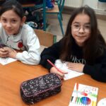 Ebben a hónapban az optimista szemüveg feladat tetszett legjobban a gyerekeknek. A kész munkákat az udvaron is kipróbáltuk, a szemüvegen át kerestük a világunk boldoggá tevő jelenségeit.
