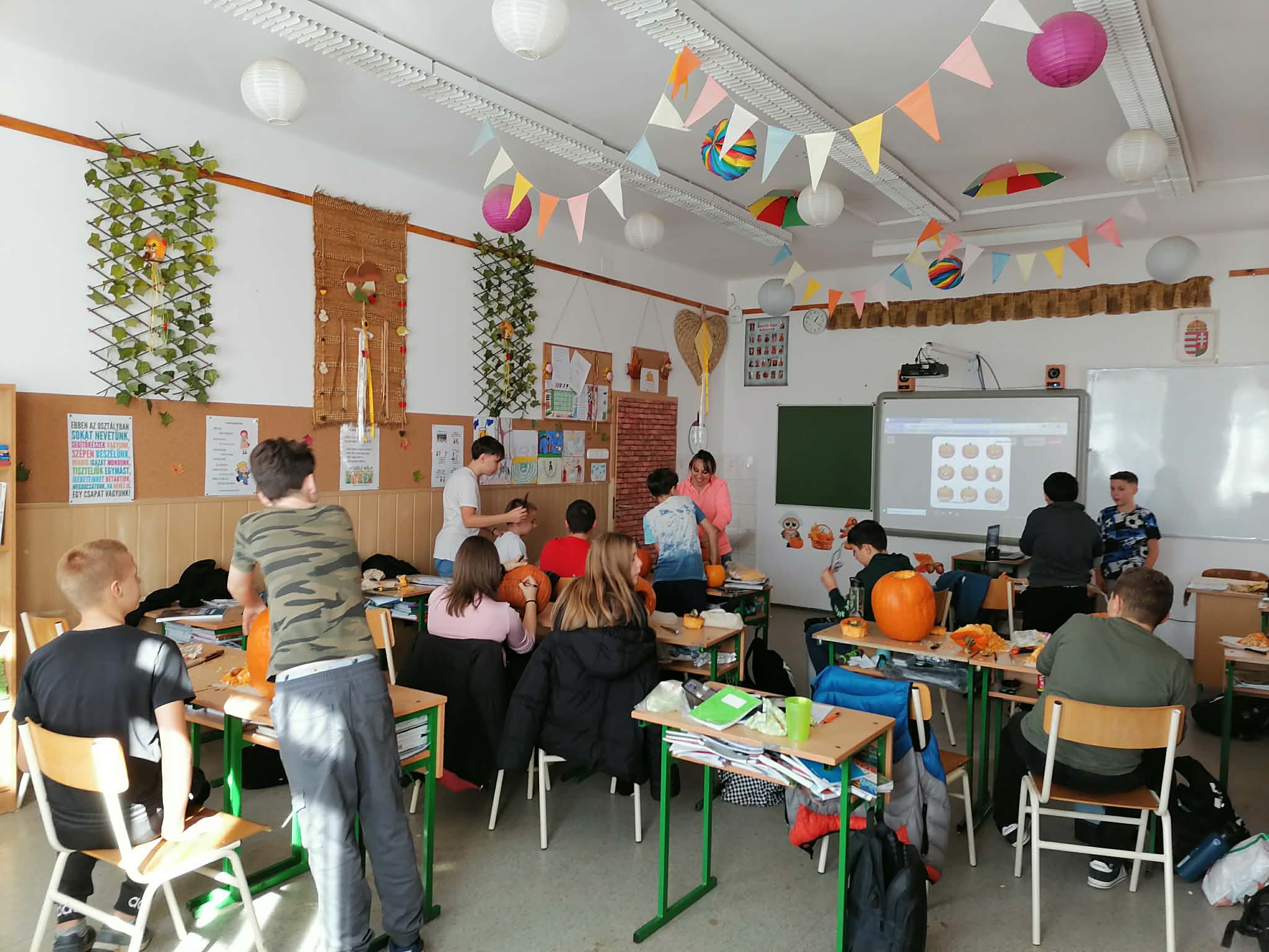 Október végén közösségépítő programként „tökös délutánt” szerveztünk, amelyen a szülők is részt vettek. A közös tökfaragás és a sült tök elfogyasztása jó hangulatú, családias légkörben zajlott, tovább erősítve az iskola és a családok közötti kapcsolatot.