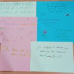 Megbeszéltük a beadandó feladatot, ez lett hf., amit a következő hétre el is készítettek a tanulók. Optimista idézeteket kerestek a tanulók, amit az osztály optimista képével tablóra ragasztottunk.