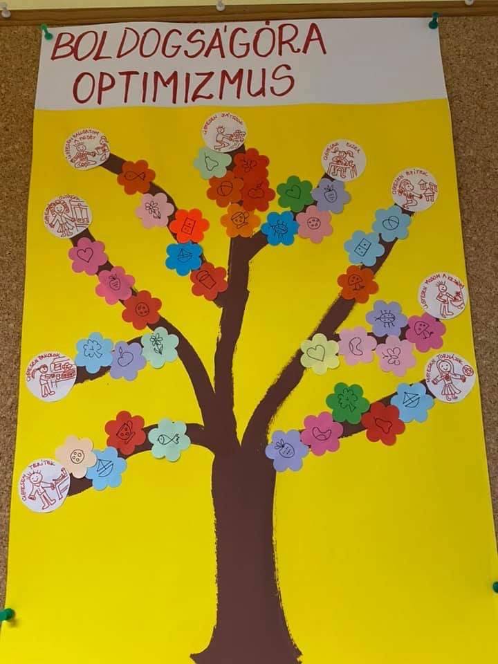 Elkészítettem egy fát, melynek minden ága egy tevékenységet jelképezett. A színes virágokra pedig felrajzoltuk a jeleket, a színeket maguk választották. Mindenkivel megbeszéltük, hogy mi az a dolog amiben ő a legügyesebb és arra az ágra kerülhetett a virág. A fát kitettük az öltözőnk faliújságjára, hogy a szülők is láthassák. A gyerekek nagyon büszkén mesélték a kép történetét.