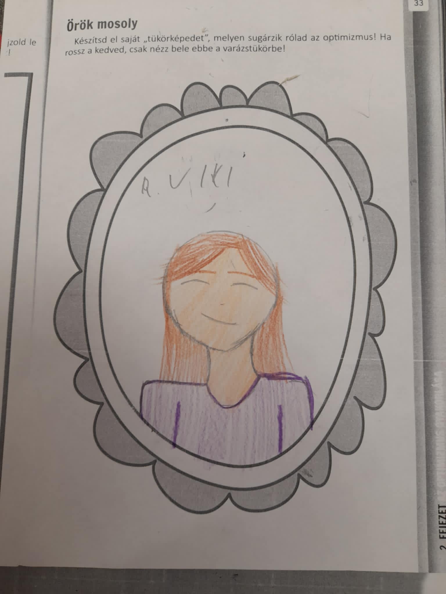 Beszélgettünk a szóról. Mit jelent optimistának lenni? Az óra folyamán elénekeltük a hónap dalát. Egy rajzot készítettek az optimista tükörképükről. Megbeszéltük, hogy hogyan viselkedik egy optimista, illetve egy pesszimista ember. Ezt egy munkafüzeti feladatban ők is megoldották. Az óra végét meditációval zártuk.