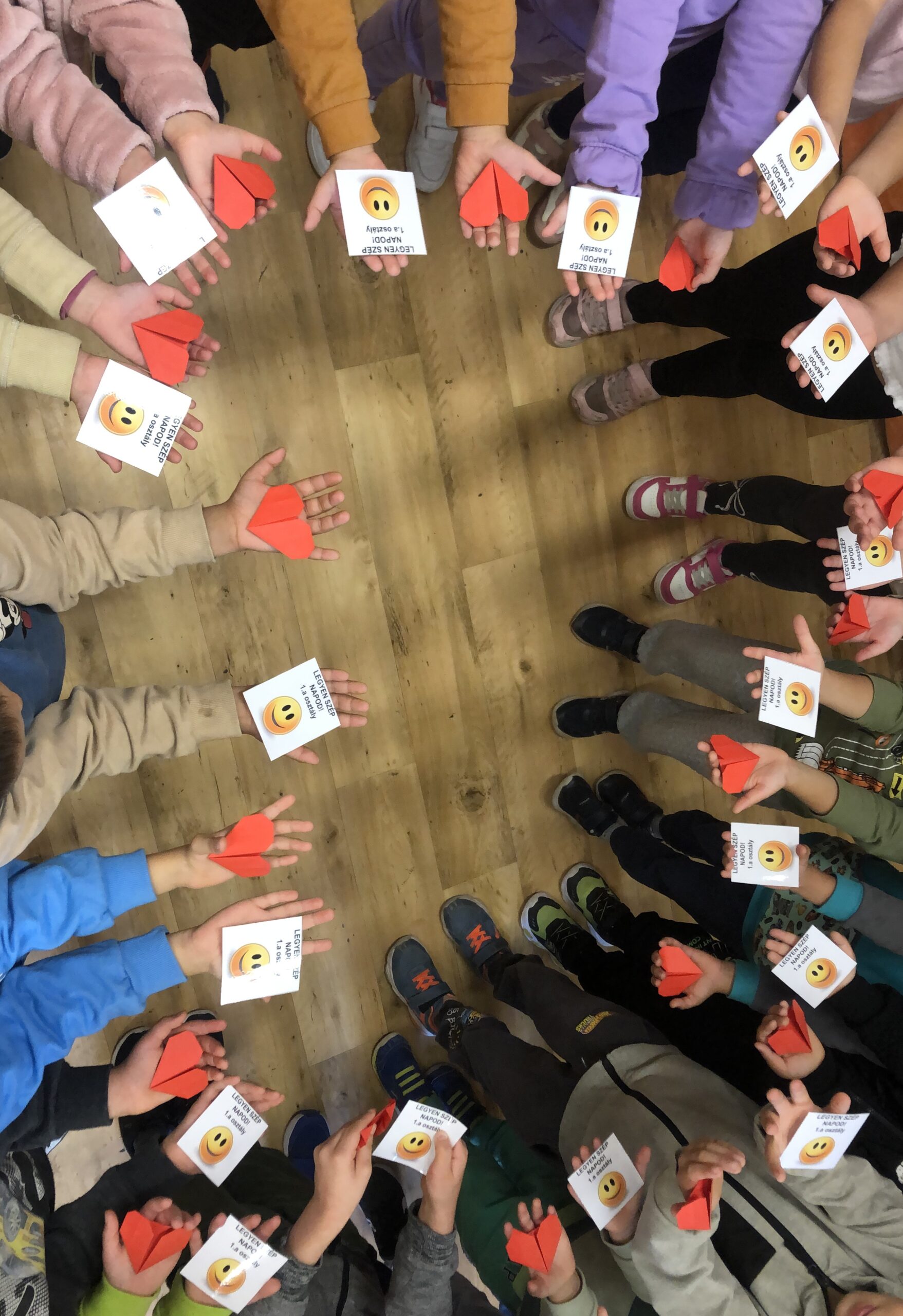 📍 Csatlakoztunk a BÉKESÉTA kihíváshoz, melyben több osztály is részt vett iskolánkból. Az 1.a osztály tanulói pozitív üzenetekkel és szeretettel hajtogatott origami szívekkel lepték meg az iskola környékén található közintézmények, üzletek dolgozóit és a község lakóit is. A gyerekek személyesen is átadták ezeket a kedvességeket, de postaládákba is helyeztek ajándékokat, így terjesztve a békét és a szeretet üzenetét.