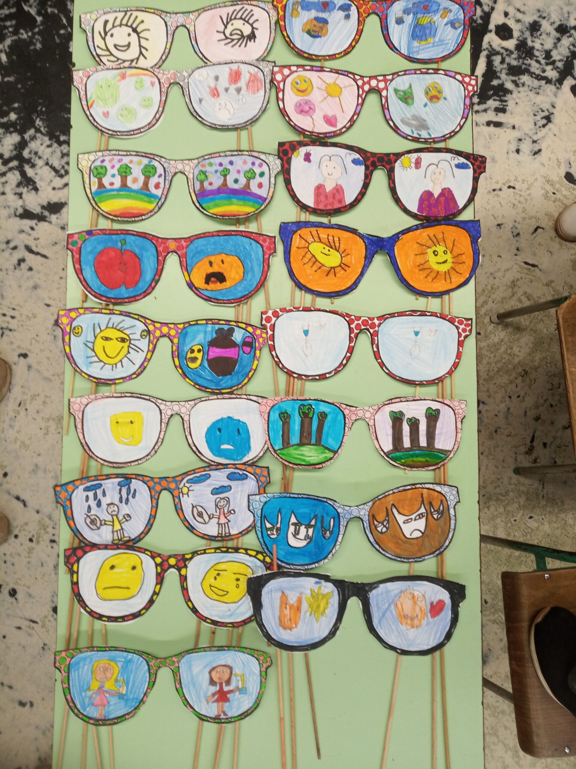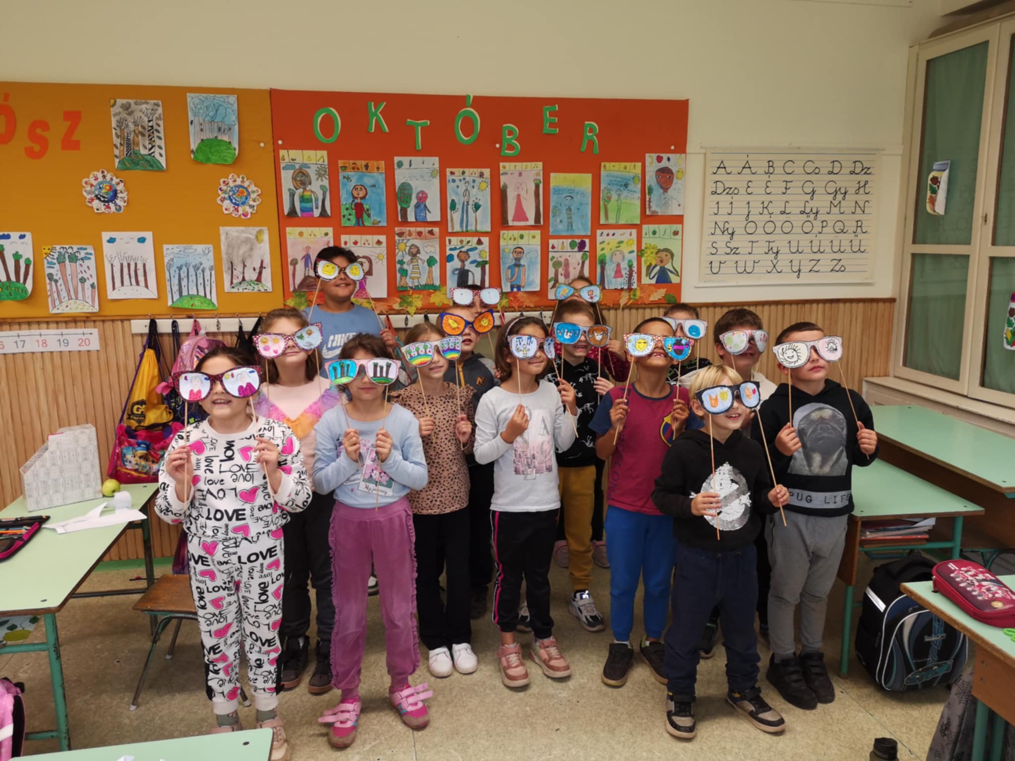 Ezután megbeszéltük, hogy az optimizmus derűlátást jelent, hiszünk abban, hogy minden jól fog sikerülni. Ha mégsem érezzük jól magunkat a bőrünkben valamilyen probléma miatt, felvehetünk egy „másik szemüveget”, amin keresztül bizakodóan nézhetünk a világba. (Megbeszéltük a saját tapasztalatokat.)