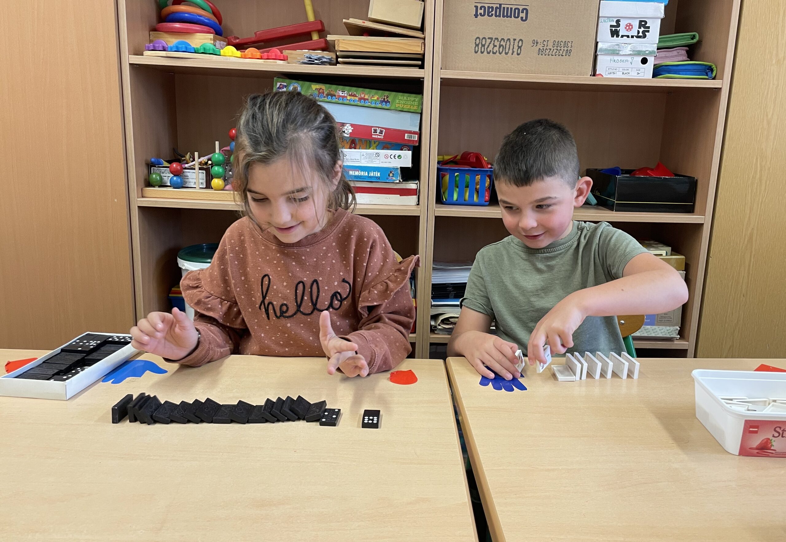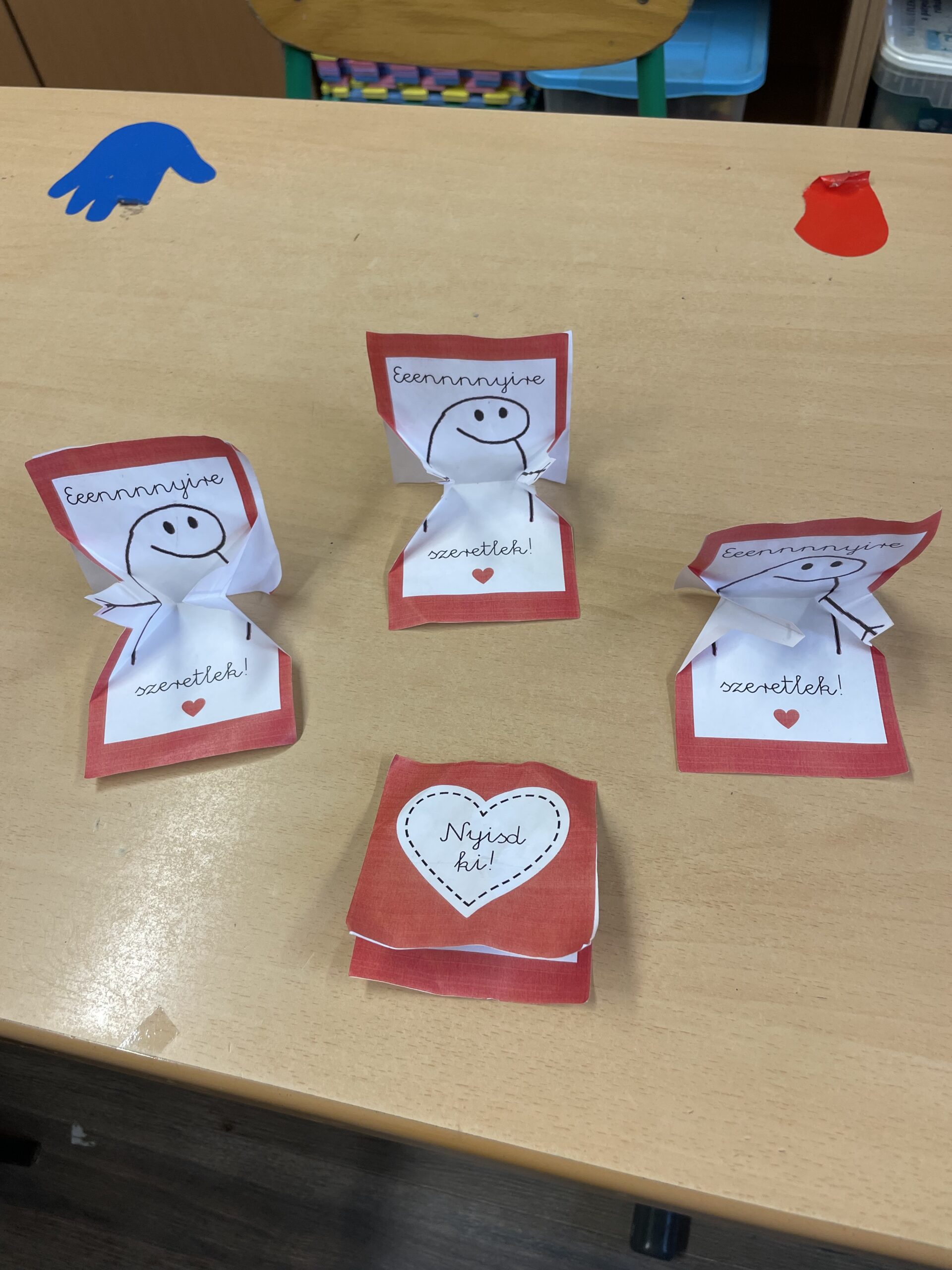 A felhívásnak megfelelően a Világ Gyalogló Nap keretében teljesítettünk egy túrát, mely a városon át, a helyi halastó mentén, a Romtorony érintésével valósult meg. Útközben megtekintettük a helyi látványosságokat. A Romtoronynál felolvastam a mesét, majd közösen elkészítettük az origami ölelős figurát. A boldogságóra keretében kiszínezték a meséhez tartozó rajzot, építettek dominóból, játszottunk ölelés játékot. A munkafüzetben lévő, a „Mennyi mindent tudok már!” elnevezésű feladatot színezéssel oldották meg. Az állatok világnapja alkalmával kavicsokra festettünk állatokat. A Halloween délutánon nagyon érdekes játékokat próbálhattak ki a gyermekek. Valamennyi tevékenységet szívesen végeztek a kis elsősök és közben jól érezték magukat. Folyamatos dicsérettel motiváltam őket, bármit is tettek, játszottak, így jó hangulatban telt a feladatokkal töltött idő.