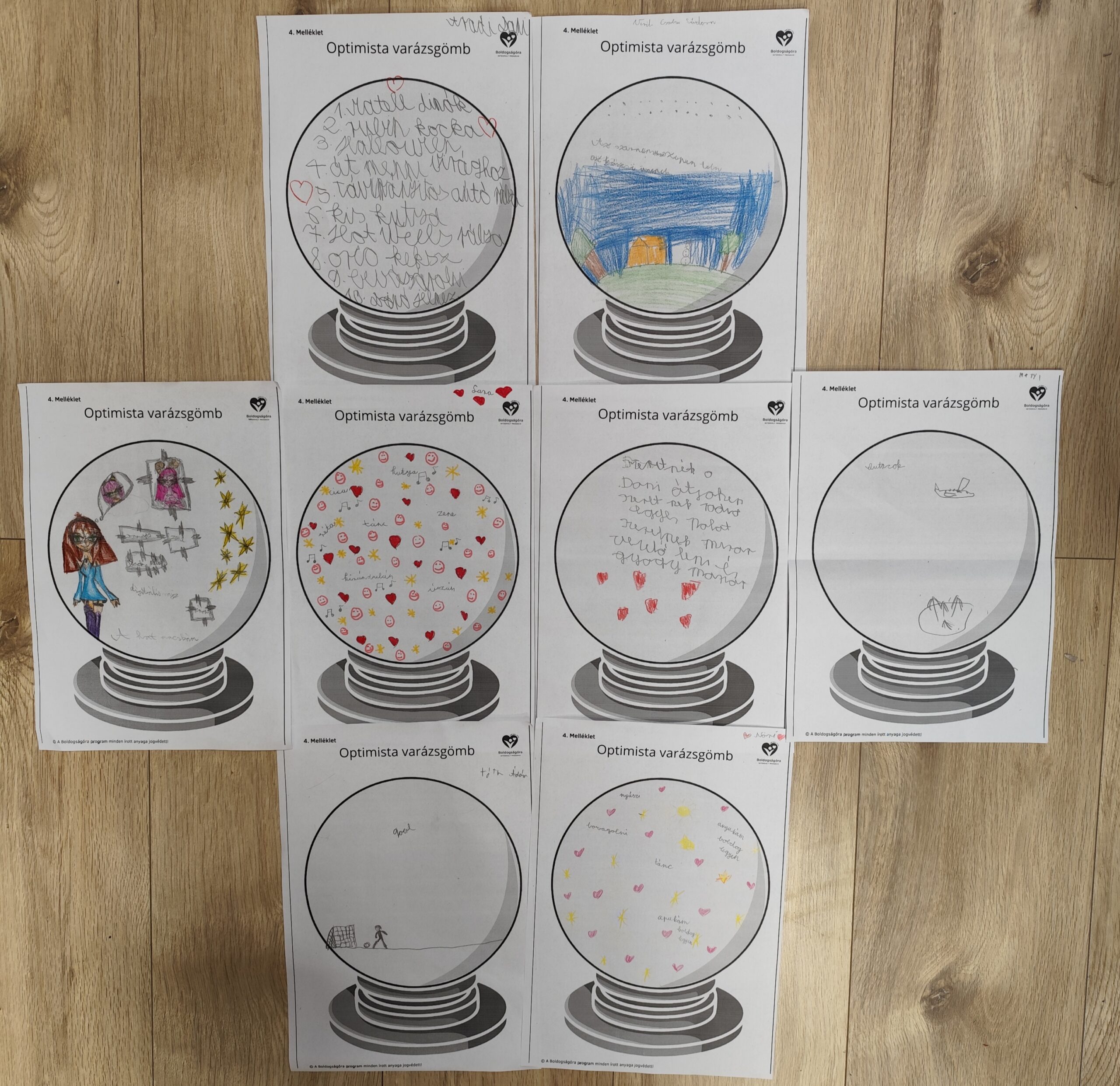 Készítettünk rajzot a varázsgömbbe, melyet kitettünk a faliújságunkra. (fotó mellékelve)