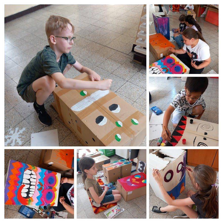 Ebben a rövidke hónapban nem volt időnk Boldogságórát tartanunk, olyan sok egyéb programunk volt. Tetszettek pedig a feladatok. Jó pár évvel ezelőtt a Kőbányai Pedagógiai napokon a Kőbányai Kulturális Központban ki is állítottuk hónapról hónapra az éves munkánkat a látogatók nem kis tetszésére. Terveztük a Galaxis fánk megteremtését is, de idén idő hiányában „csak” Májusfára futotta, de az is igazi élmény volt. Június 12-én Egészségnapunk volt, ahol az egész iskola egyszerre tornázott, kóstoló volt egészséges gyümölcsökből/zöldségekből. Végezetül érdekes feladatokat oldottunk meg 3 állomáson. A legérdekesebbnek az Activity mutatkozott. Június 13-án az alsó tagozat kipróbálhatta a régi népi játékokat és az ugrálóvárat a DÖK nap keretén belül. Június 14-én kirándultunk a régi „Úttörővasút”-tal Hűvösvölgytől János hegyig, majd a sok program után vissza. Meséltem nekik sokat a kisdobosok és az úttörők életéről, hiszen jómagam kiváló úttörő, majd kiváló úttörővezető voltam. Megismerhették a Gyermekvasúton dolgozó gyerekek felelősségteljes munkáját, ami igazán követendő példa lehet minden gyermek számára. Másnap Kőbánya múltjával, jelenével ismerkedhettünk meg. Voltunk a Helytörténeti múzeumban, megnéztük a gyönyörű Szent László templomot és az érdekes történetű Conti kápolnát. Ezután gyárlátogatáson és porcelánfestésen vettünk részt a régi és nagy múltra visszatekintő Witex-Kőporc porcelángyárban, ami újfent nagyon tetszett a gyerekeknek. De a közös fagyizás sem maradhatott ki. Utolsó napunkon, a Ballagás napján lezártuk az Indián projectunket. Totemoszlopokat festettünk kartondobozokból, építettünk ehető wigwamot ropiból, lőttünk jó messzire fa fogasból készült nyílainkkal, vadásztunk bőlényre, készítettünk indián fejdíszt bőrből/tollakkal és végezetül elszívtuk a békepipát. Az izgalmasabbnál izgalmasabb feladatok újfent elnyerte a gyerekek tetszését. Az ünnepélyes tanévzáró ünnepségen elénekeltük a kedves szülőknek az évben született boldogságos dalainkat. A szülők útravalóul kaptak egy-egy pozitív gondolatot tartalmazó tulipános képet, melyet felolvastak egymásnak. Ezekkel a lélekemelő gondolatokkal búcsúztunk egymástól. A gyerekek pedig egyéb Útravalóval és kis batyuval ballaghattak el a nyári szünetre. A búcsú nem végleges, mert augusztus végén 6napot töltünk Fonyódligeten az Erzsébettáborban. Felső tagozaton is szeretnénk folytatni a Boldogságórákat vmilyen team munkával. A leendő elsőskéimmel pedig elkezdjük szeptemberben, a 0. szülői értekezleten a szülők áldását adták rá. Augusztus elején pedig Boldogságóra képzésen veszek részt, ami régi vágyam és most megadatott. Nagyon várom!!!