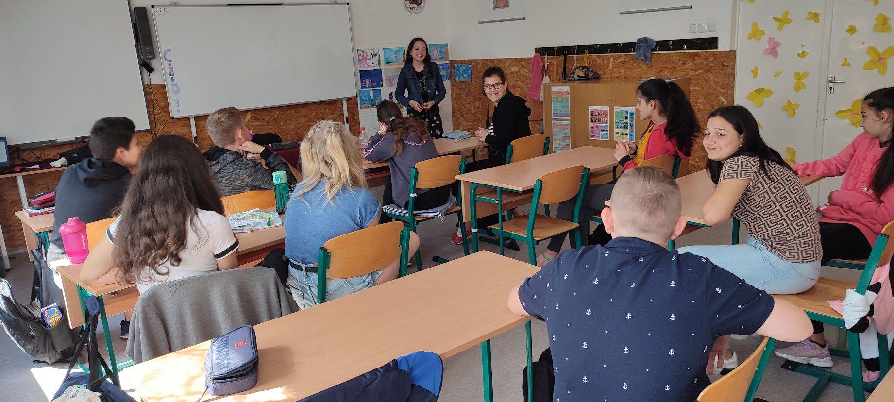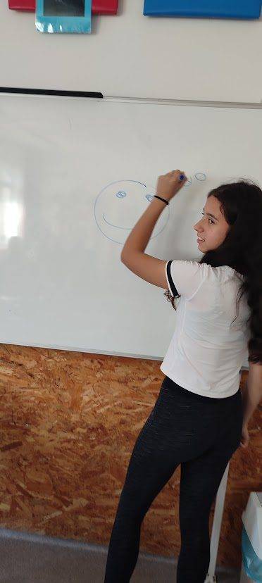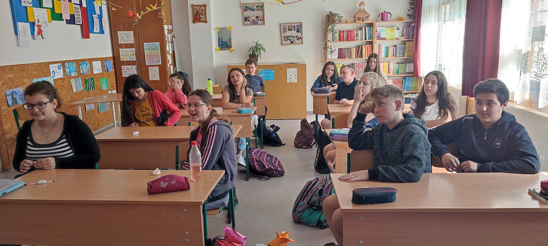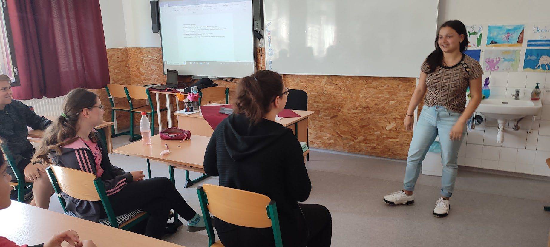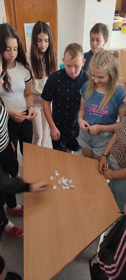 A 6. osztályos tanulókkal a Boldogságórák zárásaként Öröm Activityt játszottunk. A gyerekek egyénileg írták fel egy-egy papírra a boldogságórákkal kapcsolatos szavakat, szókapcsolatokat, élményeket. Majd húztak az összegyűjtött papírokból, és körülírással, mutogatással, rajzzal mutatták be. Lelkesen és örömmel találták ki a feladványokat.