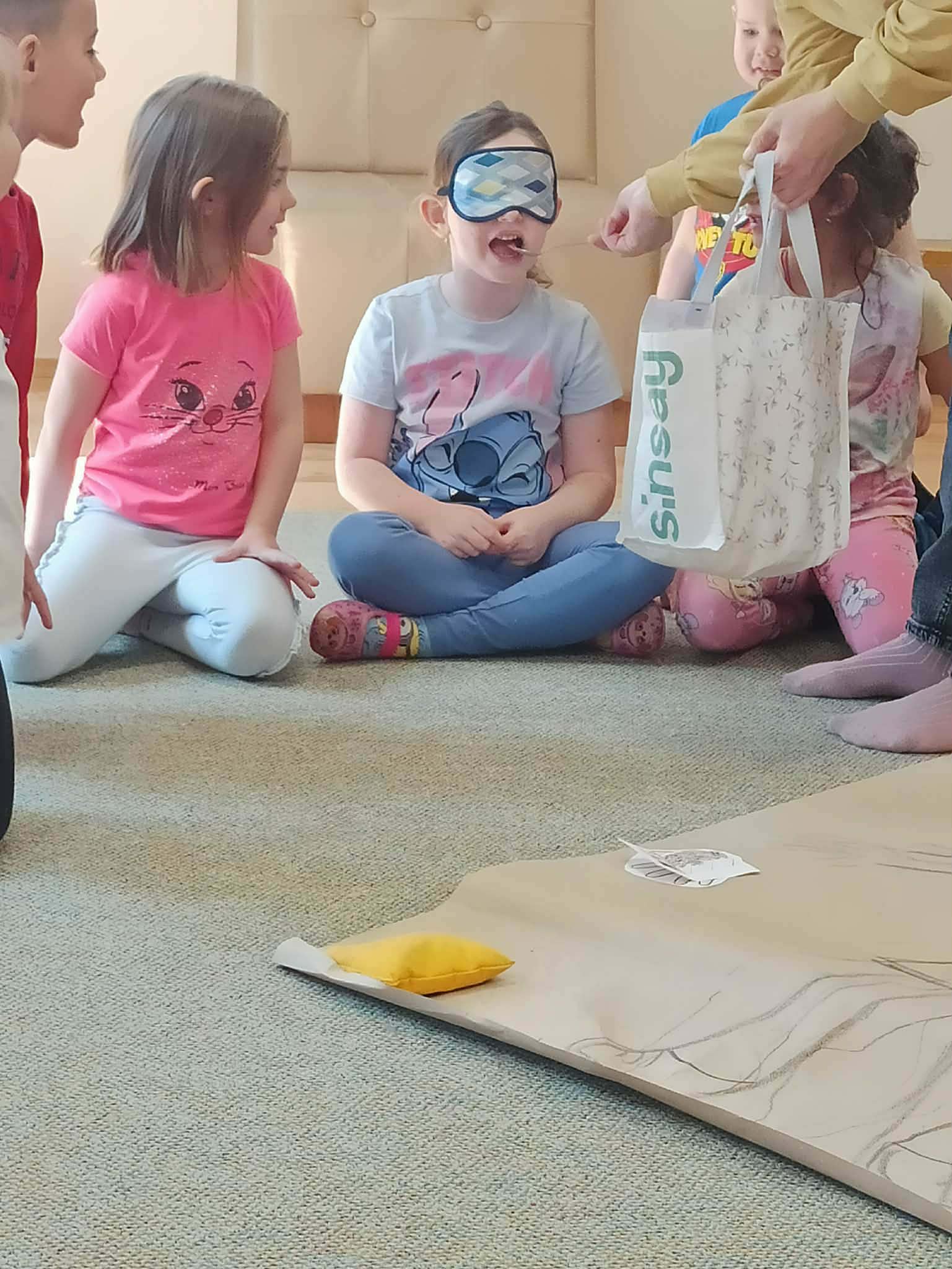 Majd áttértünk a tapintásra. Bekötött szemmel, egy letakart kosárból különféle tárgyakat kellett kitapintani: játékokat, terméseket (például tobozt), valamint élelmiszereket, mint banán és szőlő. Tárgyak között szerepelt például ceruza, kisautó, egyéb hétköznapi játékok.