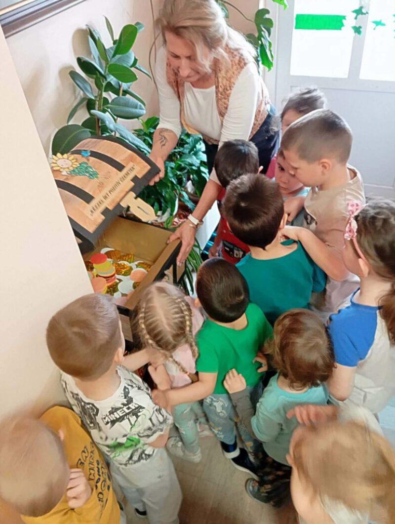 Mindezeken kívül ebben a hónapban készült el a “ Kézzel írt pozitív üzenetek kincsesládáját” is, melybe a szülök aktív közreműködésével sok szép üzenetet “aranytallért” sikerült gyűjtenünk. A kincsesláda “deszkáit” a gyermekek festették meg, közösen ragasztottuk fel. Majd a díszítést követően az előtérben helyeztük el az aranytallérokkal együtt. A jegyzői hivatalos számolást követően a legszebb üzeneteket kiosztottuk a gyerekekkel a faluban, majd a maradék üzenetből egy plakátot készítettünk, hogy a szülők számára is elérhető legyen a végeredmény.