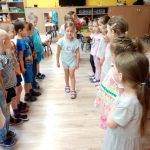 Táncos, dalos játékokat játszottunk, ismételtük az egész évben megismert énekes játékokat, verseket. Bagdi Bella hívó dalára összegyűltünk, „bizalomhidat” építettünk gyermekekből. A hídon bizalommal, behunyt szemmel sétáltak át ballagó gyermekeink miközben a többi gyermek egy-egy jó tulajdonságukat mondta el. Zárásként boldogságfüzért színezhettek.