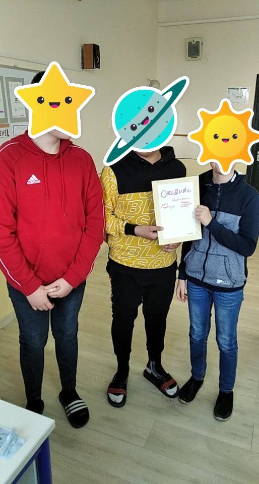 Ennek mintájára készítettünk mi is egy olyan falat, ahová az ünnepélyes díjátadó után kitűztük a tanulók által alkotott okleveleket. A tanulók könnyen ráhangolódtak a feladatra, miután tisztáztuk, hogy most nem a tanulmányi vagy sporteredményeket vesszük sorra, hanem azokat a cselekedeteket, amelyekkel számukra örömet okoztak. Egy-két példa után beindult a fantáziájuk, s oklevelet kaptak a „legjobb barátok” /padtársak/ legjobb osztályközösség/ legsegítőkészebb / legkedvsebb.. stb.