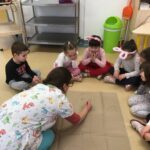 Ma is eljött Dóra velem a csoporthoz. Beszélgettünk az örömről, hogyan érhetjük el, miből nyerhetünk. Sok gyermek említette a barátságot. Így hát eljött a mese ideje. Megbeszéltük, mit hallottunk a mesében. Irányítottam egy kicsit a beszélgetést, visszautalva korábbi beszélgetéseinkre.