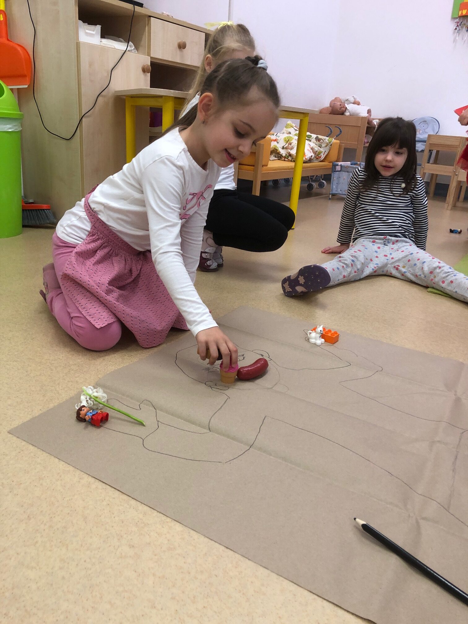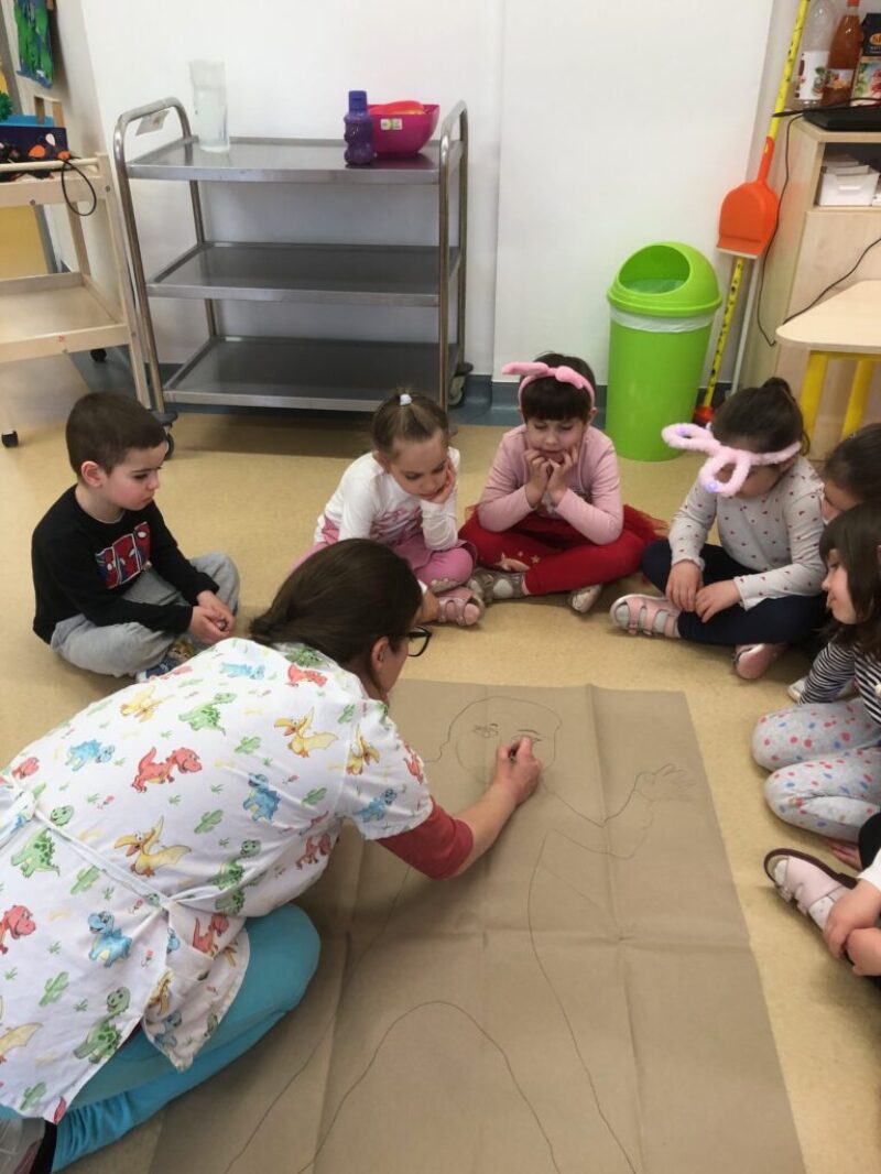 Miután mindent megbeszéltünk, visszautaztunk a csoportunkba léghajónkon. És lerajzoltuk Örömkét. Nemrég volt az érzékszervekkel foglalkozó témahetünk, így a gyerekek lelkesen keresgéltek a csoportban a kellő dolgok után. Végül szóban olyan dolgokat is gyűjtöttünk, amiket a szívünkkel is érzékelhetünk. Jó és rossz egyaránt előkerült. Közösen megállapítottuk, hogy sokkal jobb a jót érezni, akkor is ha adod és akkor is, ha adod.