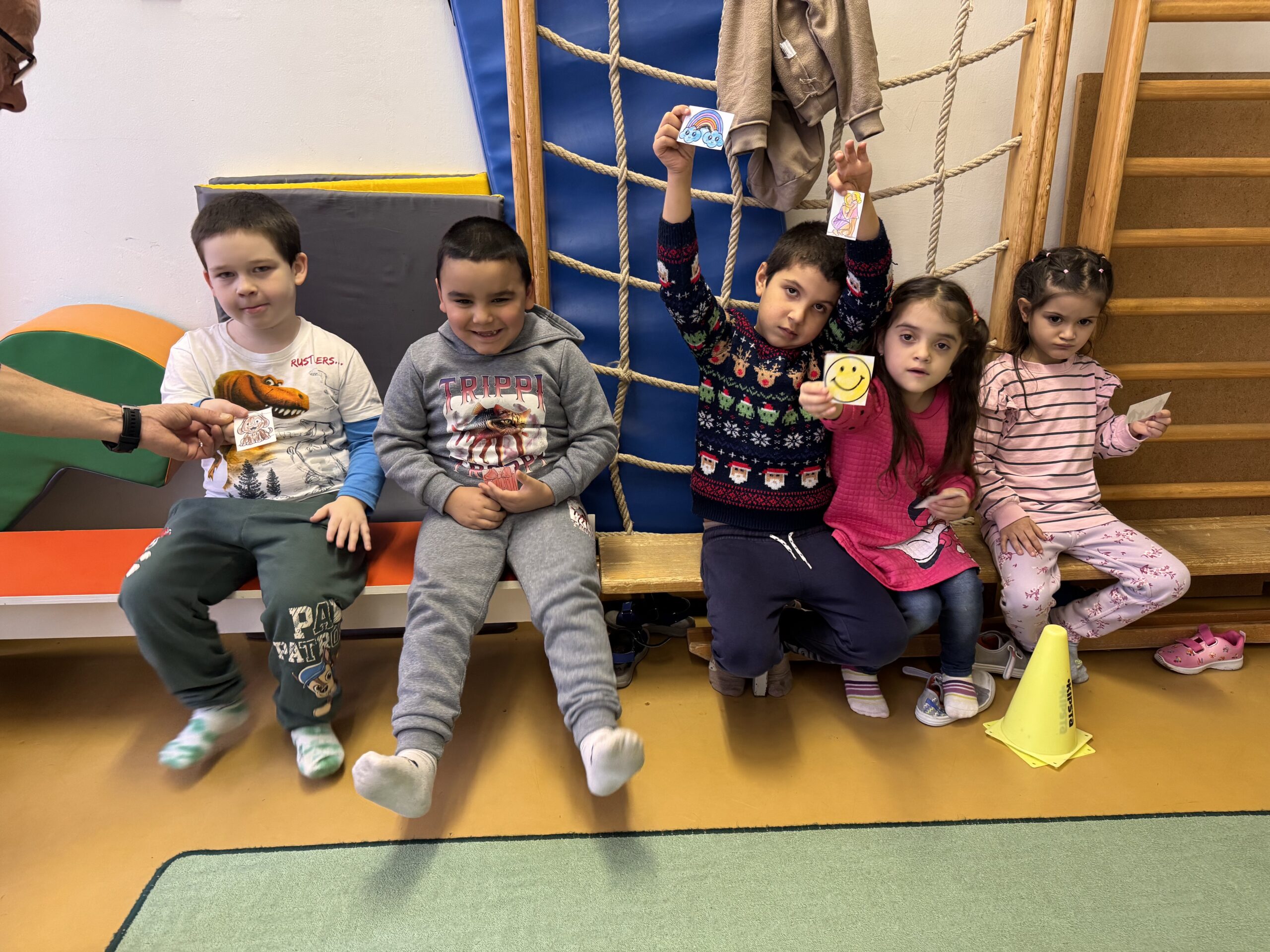 A foglalkozást a „Ha jó a kedved” című zenés mozgással kezdtük. Ez segített a ráhangolódásban, a gyerekek gyorsan feloldódtak, örömmel csatlakoztak a dalhoz és a mozdulatokhoz. A jó hangulat már az első percekben kialakult, ami megkönnyítette a további együttműködést. A fő tevékenység egy kinti „öröm-képkereső vadászat” volt, amelyet előzetesen készítettem elő. A kertben (időjárás változás miatt bent) különböző pozitív tartalmú, egyszerű képeket rejtettem el (mosolygó napocska, szivárvány, virág, kedves arc, kis szív, pillangó, lufi stb.). Minden képhez egy-egy „örömüzenet” vagy jó gondolat tartozott, amit a gyerekek csak akkor tudtak meg, ha megtalálták a képet. Ez a játék nagyon motiváló volt számukra. Lelkesen futottak körbe-körbe a kertben, keresték a rejtekhelyeket, közben együttműködtek, segítették egymást: sokszor kézen fogták a lassabban haladókat, vagy megmutatták, hol láttak egy eldugott képet. Öröm volt látni, mennyire megmozgatta őket ez a játék – mind testileg, mind érzelmileg. A megtalált képeket egy nagy közös plakátra ragasztottuk fel, amely így az „optimista kincseink” fává alakult. A kézműves részben elkészítettük az „Öröm-napocskát”: minden gyerek felragaszthatta a saját megtalált képét egy papír nap közepébe, majd köré sugarakat készítettünk. Közben arról beszélgettünk, kinek mitől lesz jókedve, milyen apró dolgok teszik széppé a napját. Jó volt hallani a sok őszinte, gyermeki gondolatot: „ha fogják a kezem”, „ha együtt játszunk”, „ha megölelnek”, „ha süt a nap”. Ezután Bagdi Bella vidám dalait hallgattuk és mozgással kísértük: a „Rosszkedv elűző” és a „Pozitív gyerek vagyok” különösen sok nevetést váltott ki belőlük. A zene mindig segít nekik levezetni a feszültséget, és most is azt tapasztaltam, hogy a mozgásos, ritmusos tevékenység nagyon jó hatással volt a hangulatukra. A foglalkozás végén közösen megcsodáltuk a „jókedv plakátot”, amelyen ott volt minden megtalált kép. A gyerekek büszkén mutatták a sajátjukat, és újra végig beszéltük, milyen sok jó érzés és élmény rejlik a hétköznapokban – csak észre kell venni őket.