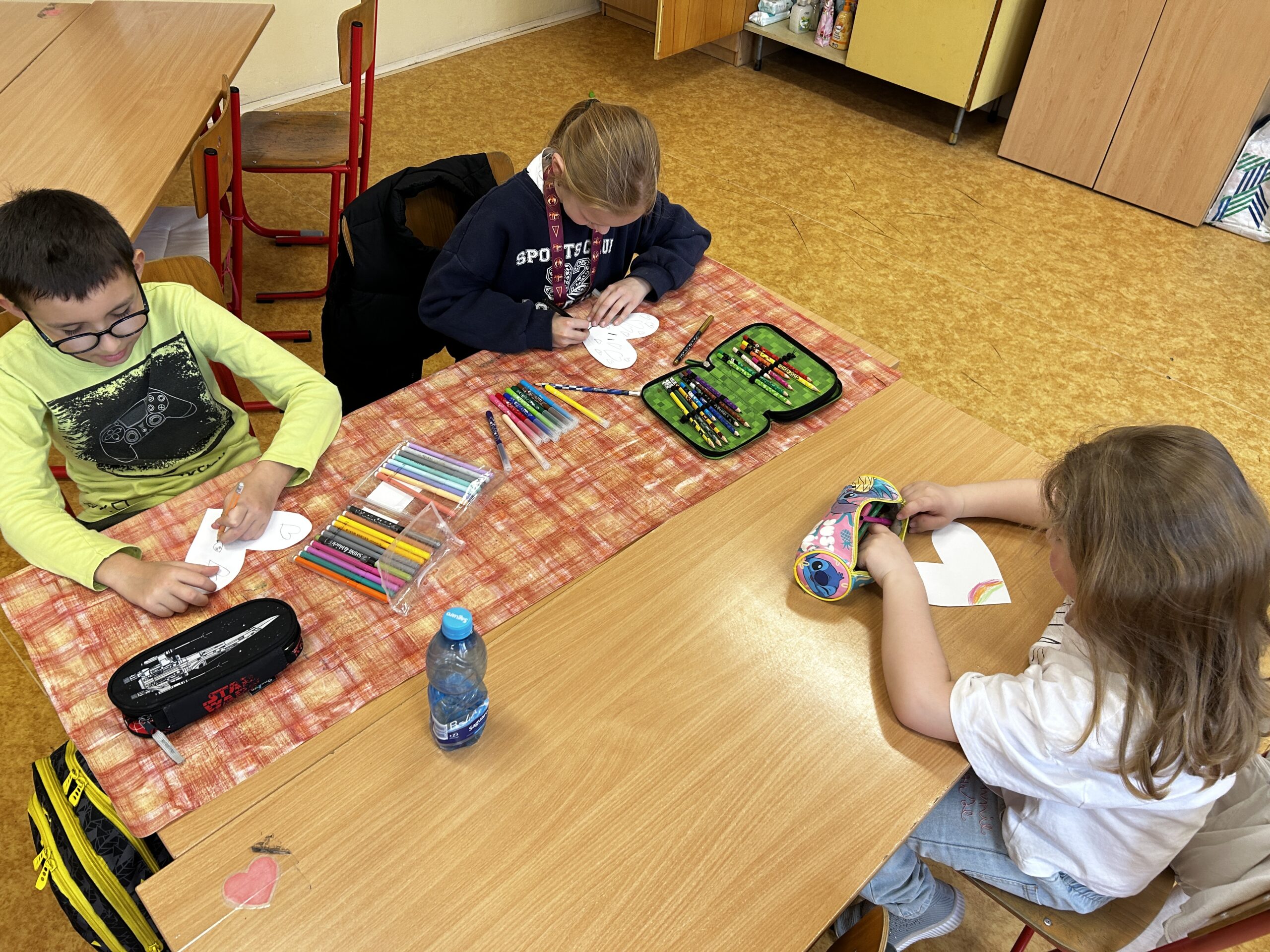 A napközis gyerekekkel örömszíveket készítettünk, amibe mindenki belerajzolta, hogy mi teszi őt boldoggá. Minden apróságot bele is rajzoltak, ami boldoggá teszi őket.