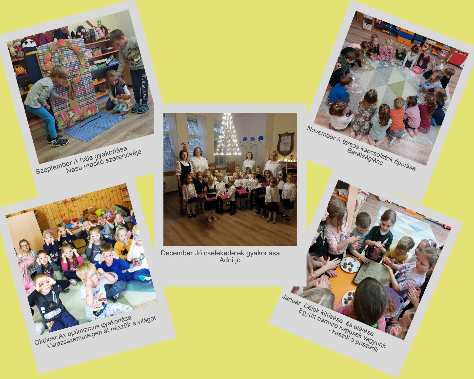 – a novemberi „Kis barátom, hogy vagy?” játékot és a gyerekek saját képére formált emberfiguráiból alakított barátságláncot;