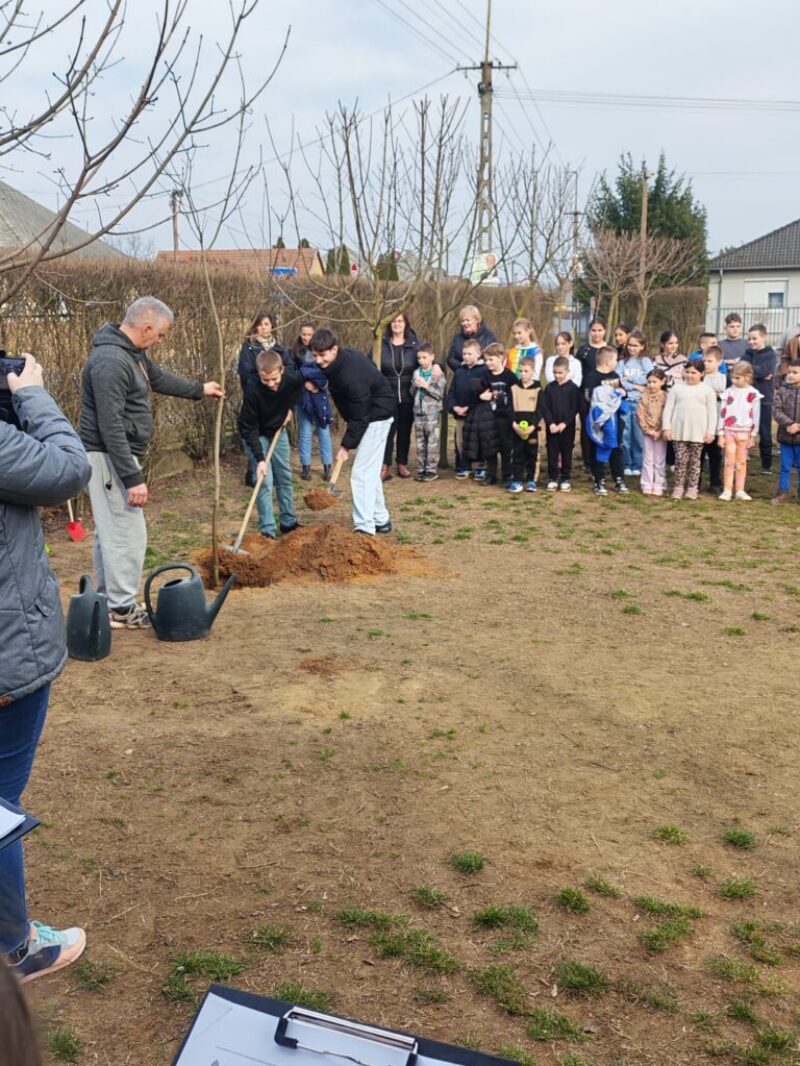 A márciusi boldogságórák témája az Apró örömök élvezete nagyon közel állt a gyerekekhez. Minden reggel azzal indítottuk a napot, hogy elmondták, hogy előző nap milyen apró örömökben volt részük akár az iskolában és a családi közegükben. Nagyon lelkesek voltak, örömmel osztották meg a gondolataikat. Nemes Nagy Ágnes: Mennyi minden c. versét felolvasva a vers üzenetéről beszélgettünk és megfogalmaztuk, hogy kincsekkel vagyunk körülvéve, csak észre kell vennünk őket. A 10 millió Fa Alapítvány a Nemzeti Faültetés Napja kezdeményezéséhez nemcsak a Boldogságóra program, – melynek iskolánk is örökös tagja-, hanem a mi közösségünk is örömmel csatlakozott -e nagyszerű kezdeményezéshez, ehhez a változást elősegítő mozgalomhoz. Iskolánk dolgozói, tanulói és a szülők közreműködésével március 2-án délután intézményünk udvarán, a Nemzeti faültetés napján egy juharfa csemetét ültettünk el közösen. Megmutattuk, hogy összefogással képesek vagyunk zöldebbé, egészségesebbé és szebbé tenni környezetünket. Minden elültetett fa egy új történet kezdete – egy történet, amely rólunk szól, és arról, hogyan vigyázzunk a ránk bízott világra. A mai nappal tettünk valamit a természetért, az állatokért – és saját jövőnkért is. Mert minden fa egy kis ajándék a Földnek. Minden elültetett csemete a remény, az összefogás és a felelősségvállalás jelképe. A fák csendben dolgoznak értünk, igazi hősök: tisztítják a levegőt, árnyékot adnak a forró nyári napokon, otthont nyújtanak élőlényeknek, és még abban is segítenek, hogy szebb és zöldebb legyen a világunk. Mottónk volt: Ültessünk még sok fát, gondozzuk őket szeretettel, és legyünk mi is a természet igazi barátai!