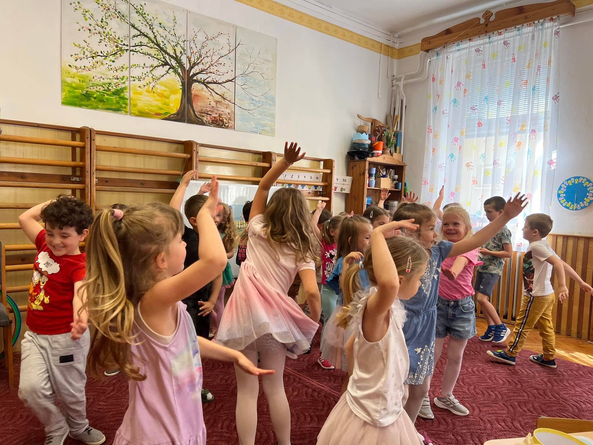 Elmeséltem nekik Az aranytulipán című mesét, melyet el is játszottunk. Mondókáztunk, énekeltünk, mozogtunk mesélés közben. A mese végén lakodalmas táncot jártunk. Hallgattuk kedvenc Bagdi Bella dalainkat, melyeket mozdulatokkal is kísértünk. Táncoltunk, és relaxációs gyakorlatokat végeztünk. Itt is vannak kedvencek, melyeket a gyerekek már önállóan végeznek. Azt gondolom, hogy a gyerekek életébe, mindennapjaikba egyre jobban beépülnek az óvodában megismert boldogság fokozó technikák. A hála, az apró örömök, a jó cselekedetek, a testmozgás, szinte mindennapos a gyerekek életében. Bízunk benne, hogy ezeket tovább viszik, és nemcsak az óvodában, hanem az otthoni életükben is alkalmazzák.