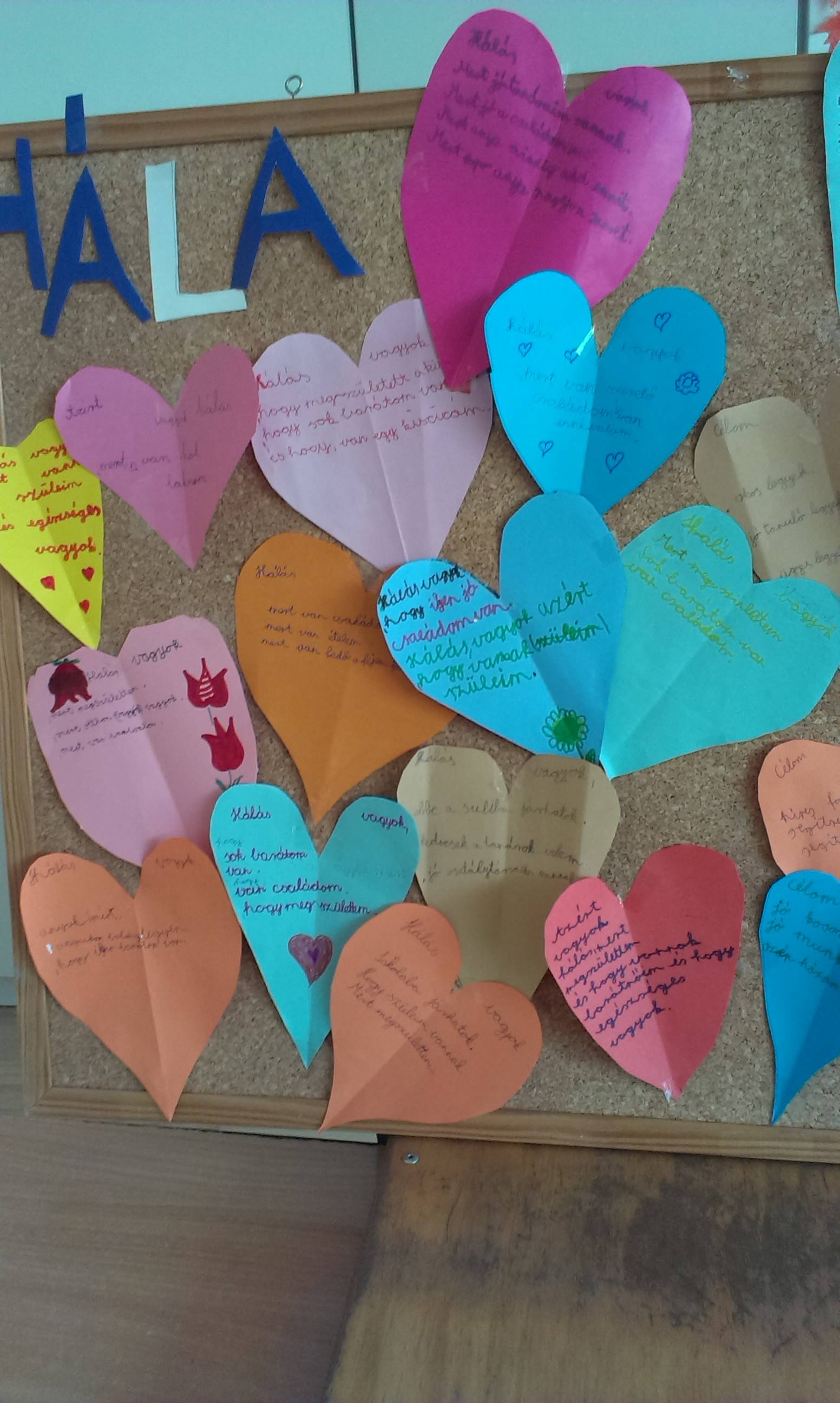 4.osztályos gyerekeinkkel nagyon kevés időnk van a napköziben beszélgetni, vagy bármilyen foglalkozást tartani. Néhányan olyan szép és kedves gondolatokat fogalmaztak meg, hogy soha nem gondoltam volna róluk, hogy ilyen szép a lelkük.Pont a legcsibészebb gyerekeink mondták a legszebb gondolatokat arról, hogy ők miért hálásak és mit szeretnének elérni a későbbiekben.