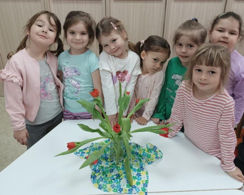 -A nemzetközi nőnap (március 8) alkalmával a fiúk tulipánnal kedveskedtek a lányoknak