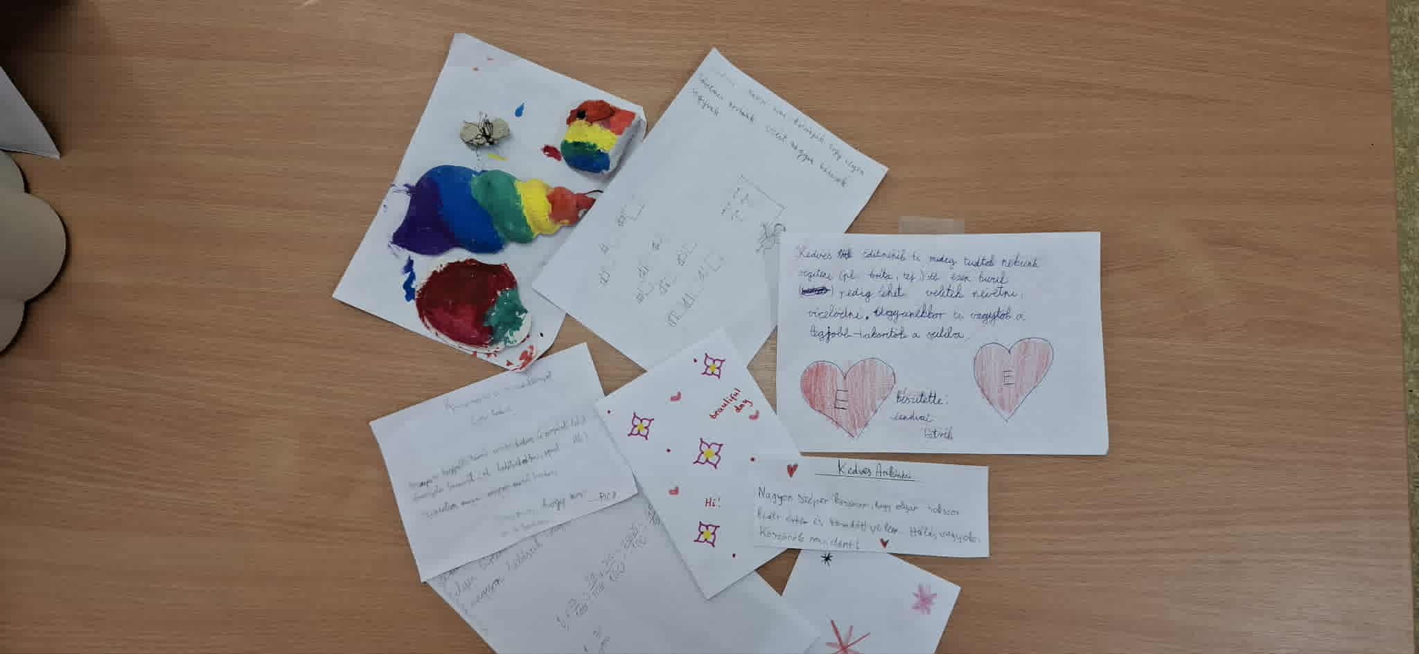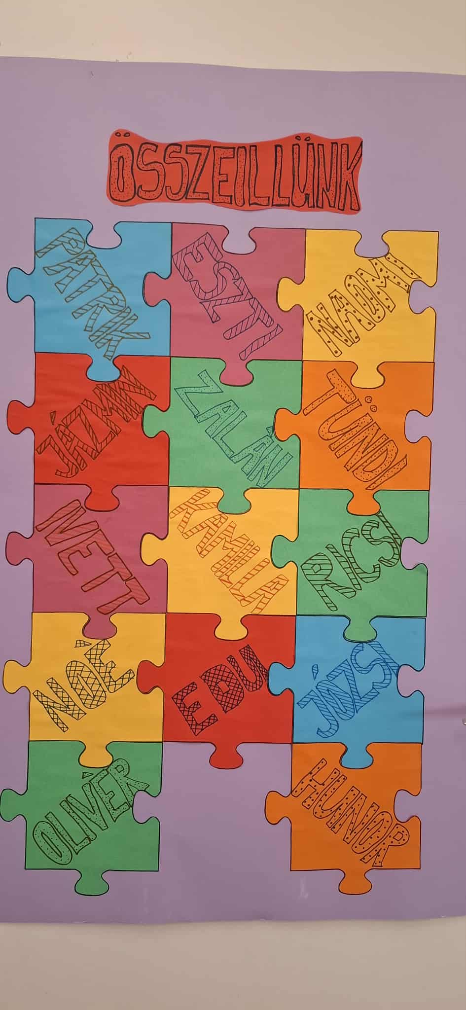 Az új tanévet egy hálalista készítésével kezdtük, és a legtöbbször mondott gondolat, az a jó osztályközösségért mondott hála volt! Így ez lett a szeptember „szlogenje” és egyben az ajtónkat is díszíti: ÖSSZEILLÜNK! A beszélgetések során sok minden szóba került, hálásak voltunk az egészségért, barátokért, jó matematika jegyekért stb. A hónap folyamatosan végzett feladata az volt, hogy az iskola valamely dolgozójának kellett egy kis hála üzenettel, ajándékkal kedveskedni, de pénzt nem lehetett költeni rá, csak saját készítésű dolog lehetett. Minden tanuló készített egyet. Így kapott például az új matematika tanárnő, a fejlsztő pedagógusunk, az igazgató asszony, és a takarító nénik is. Többen meg is könnyezték a kedves gondolatokat!