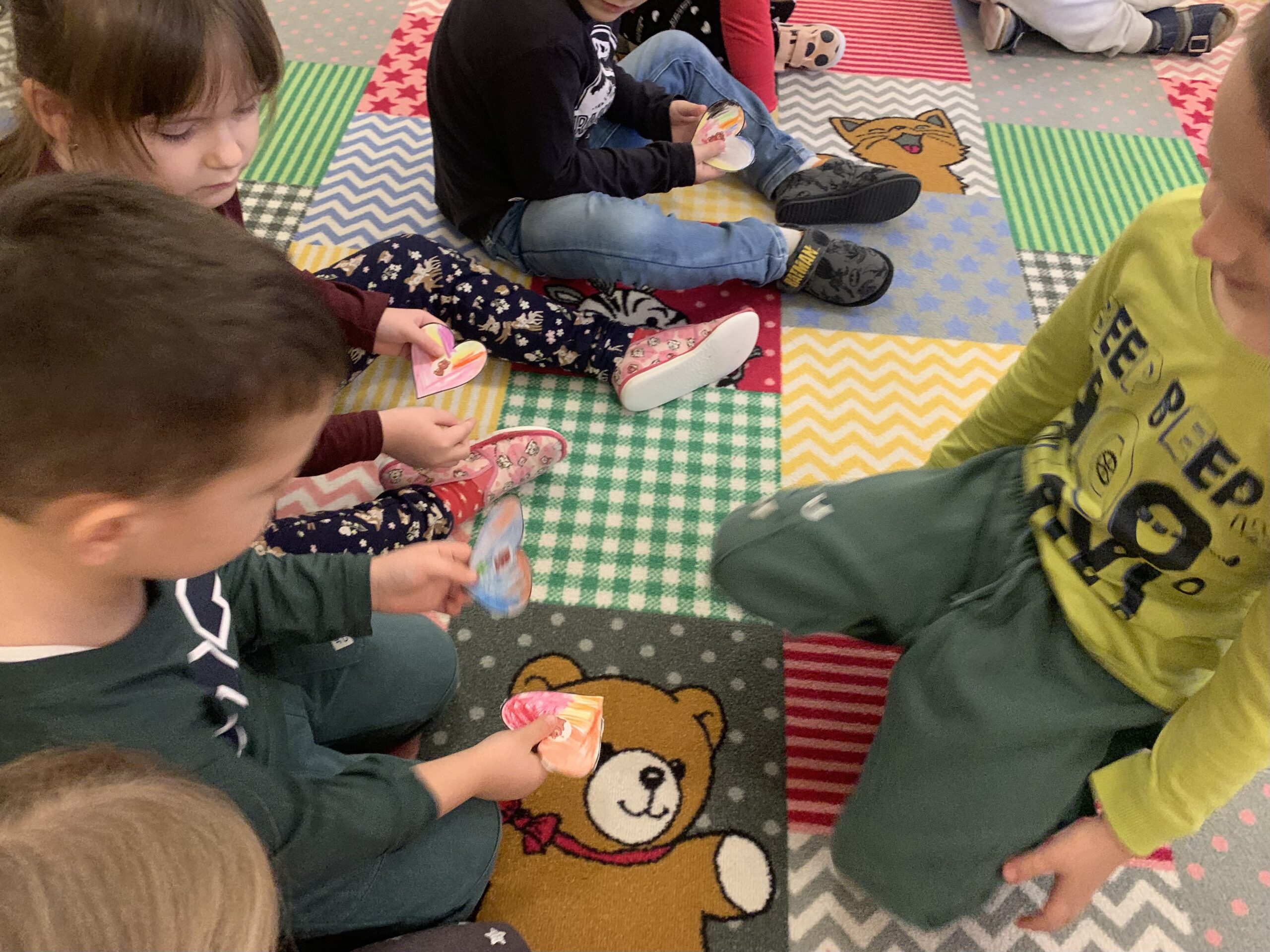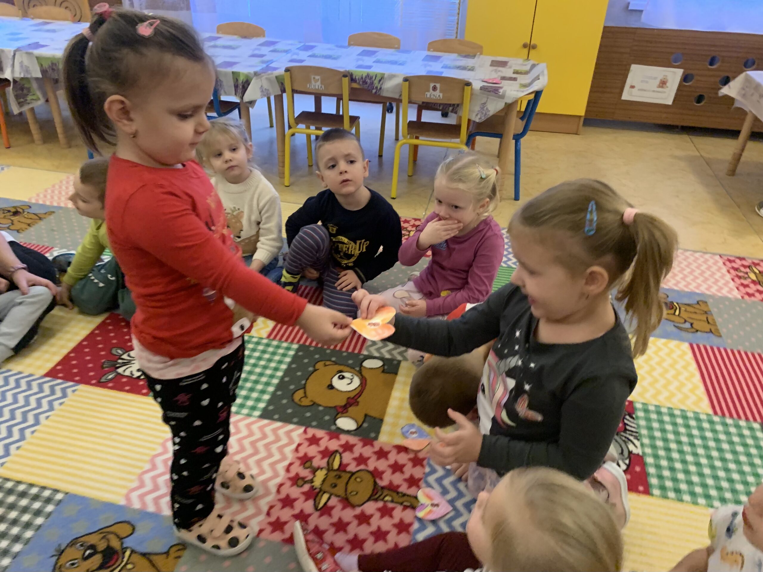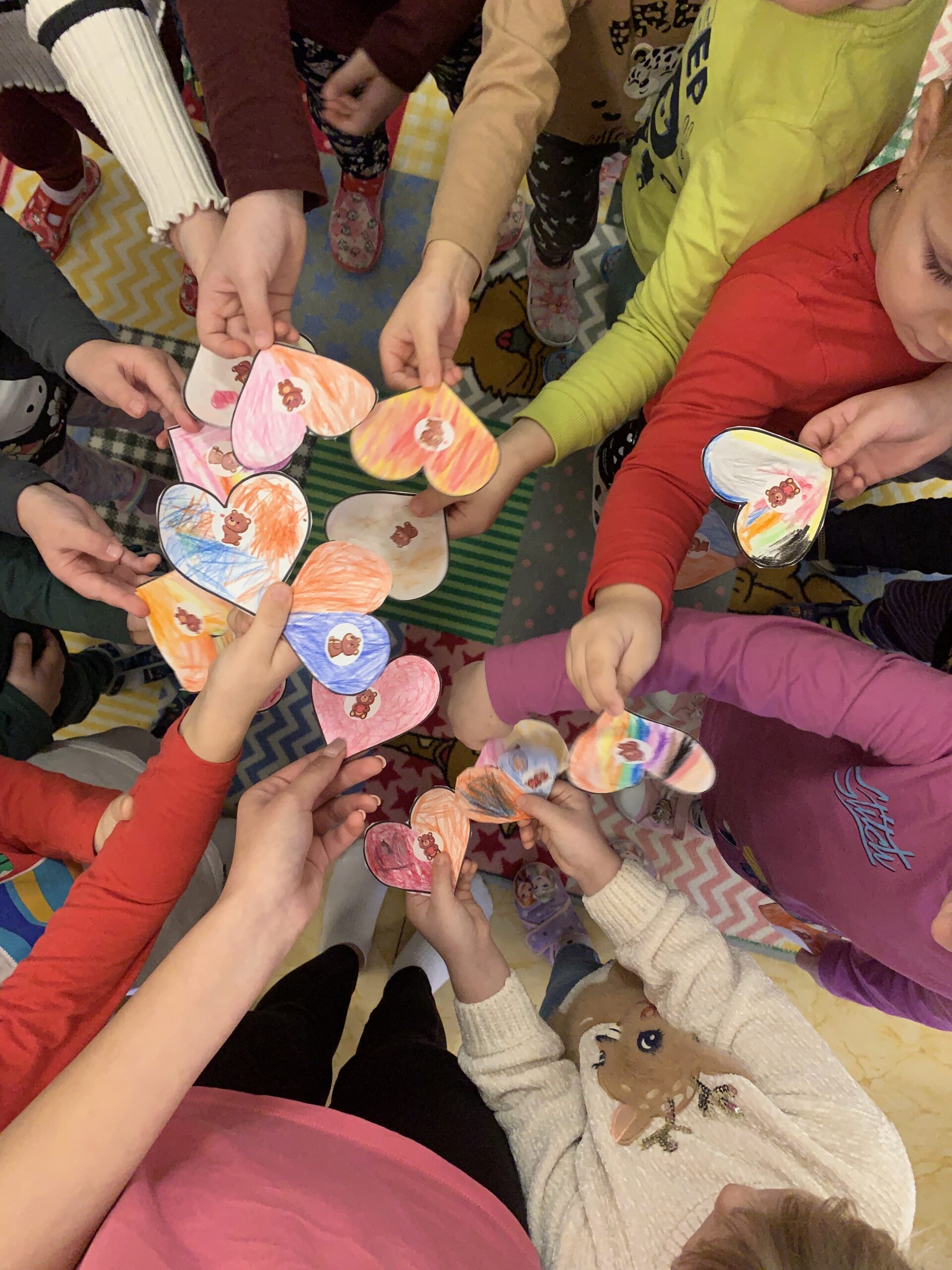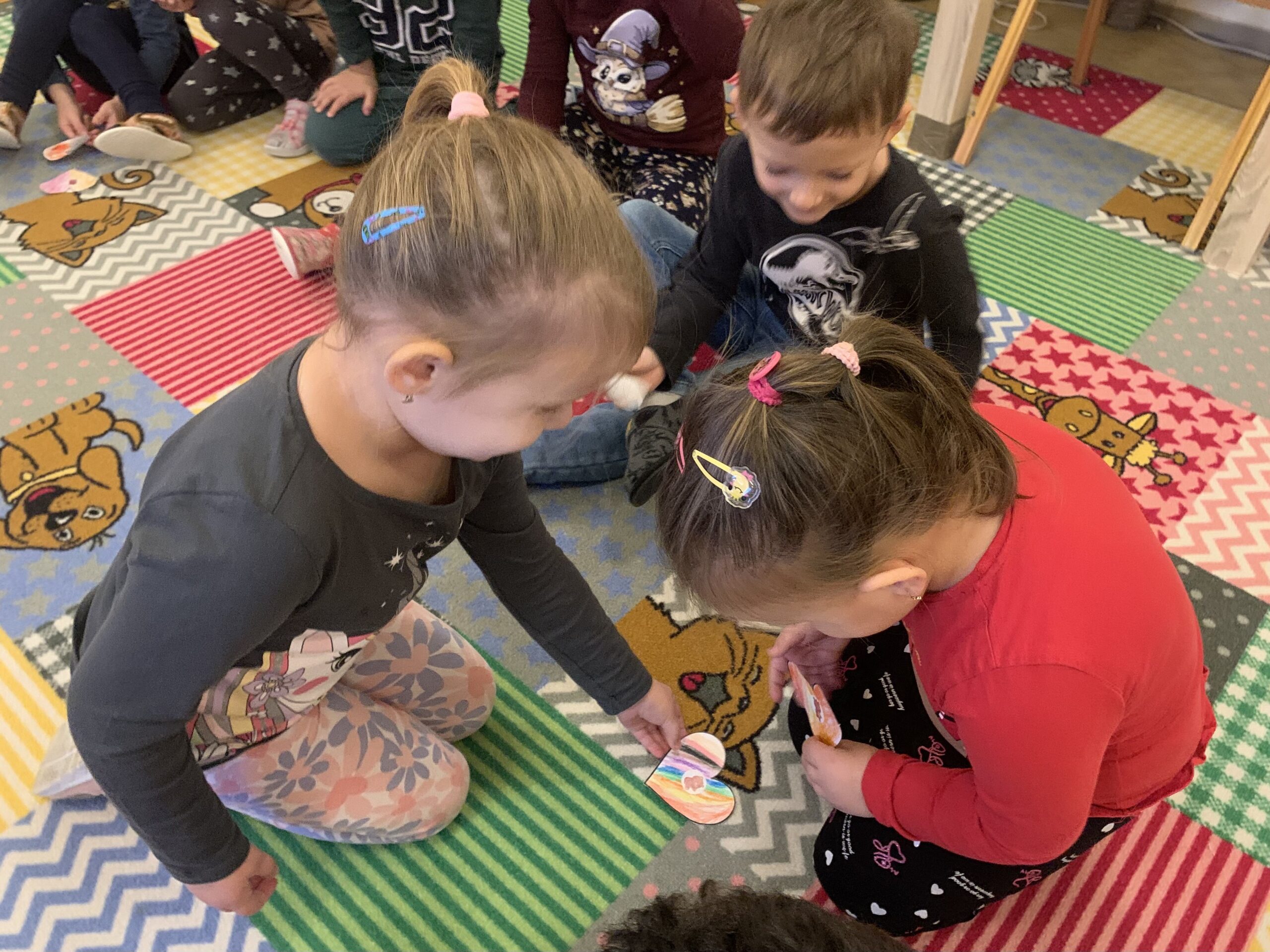 A gyerekek kiszínezték a saját szívecskéjüket, majd átadták annak a társuknak, akit a