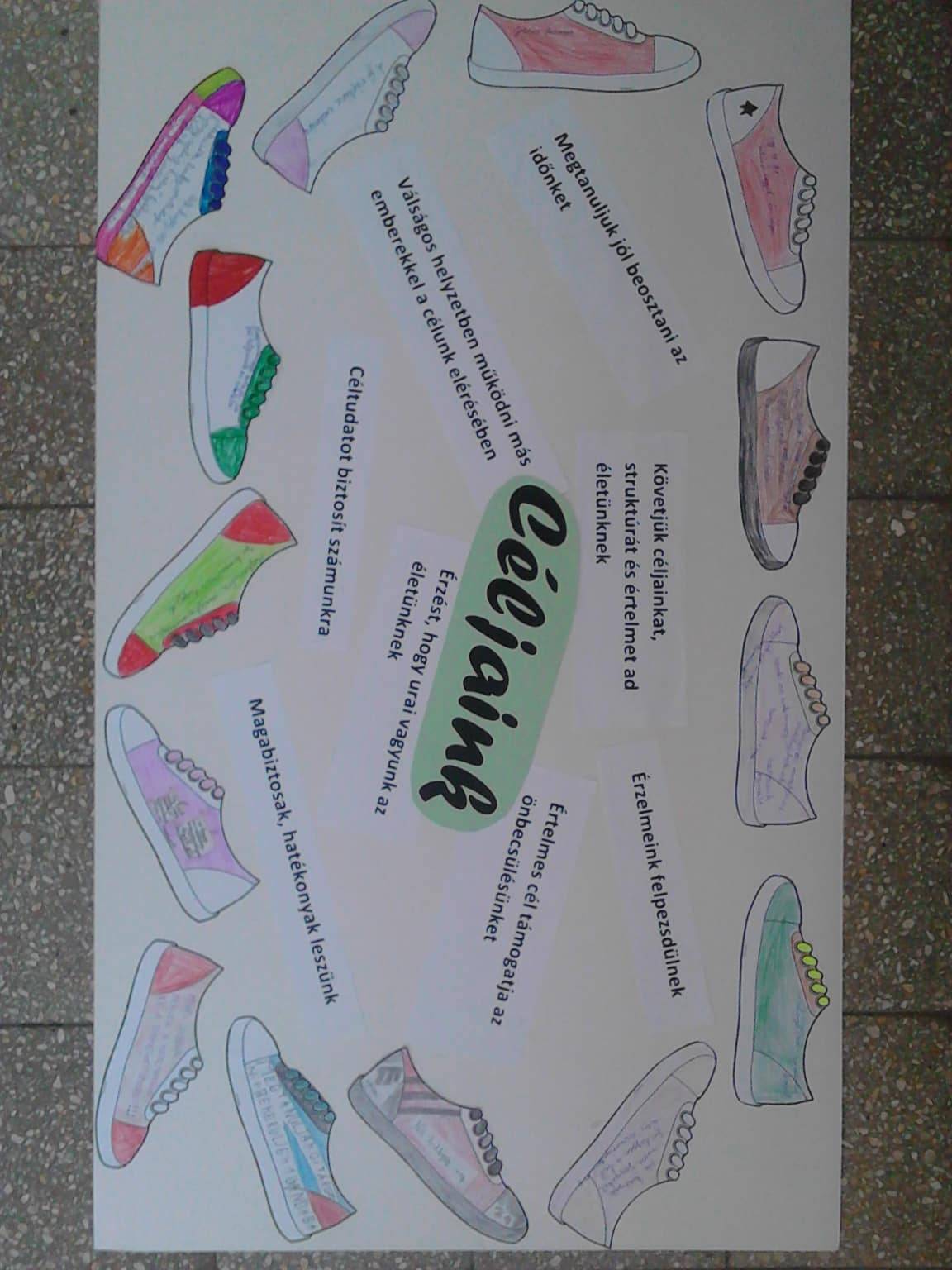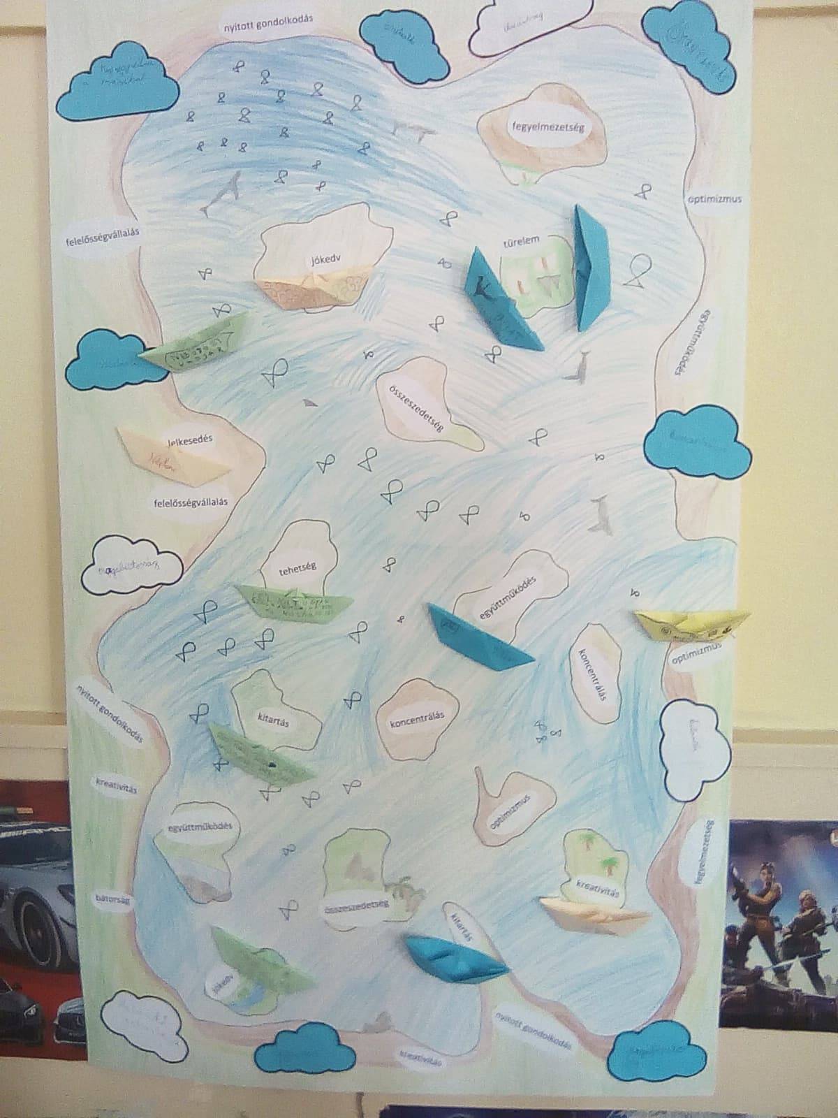 Ebben a hónapban megfogalmaztuk mi is a cél, mi az egyéni cél és még milyen céljaink lehetnek (osztály cél). Mindenki az osztályból átgondolta, hogy mit szeretne közeli jövőben elérni és ezt milyen módon, úton teheti meg. Mit kell tennie, hogy megvalósíthassa a célját. A cél elérése egy hömpölygő tengerhez hasonlítottuk, amin kisebb szigetek vannak, kikötőkkel, mindegyik olyan nevet visel ami a cél eléréséhez szükséges. Tettük ezt úgy, hogy mindenki hajtogatott magának egy hajót, amire ráírta az elérni kívánt célt és végigvezette a háborgó tengerén, ahol összeszedte a cél eléréséhez szükséges talentumokat. Elkészítettük a bakancslistát is, amire nem csak a célokat írtuk fel, hanem az ahhoz vezető utat is, és végül készítettünk egy domborzati térképet is a céljainknak ahol a hajónk kiköthet a cél eléréséhez szükséges kikötőben, ha már odaértünk. (mindennek az egésznek egy része bemutató órában történt, ahol az óvónénik látogatták meg óránkat)