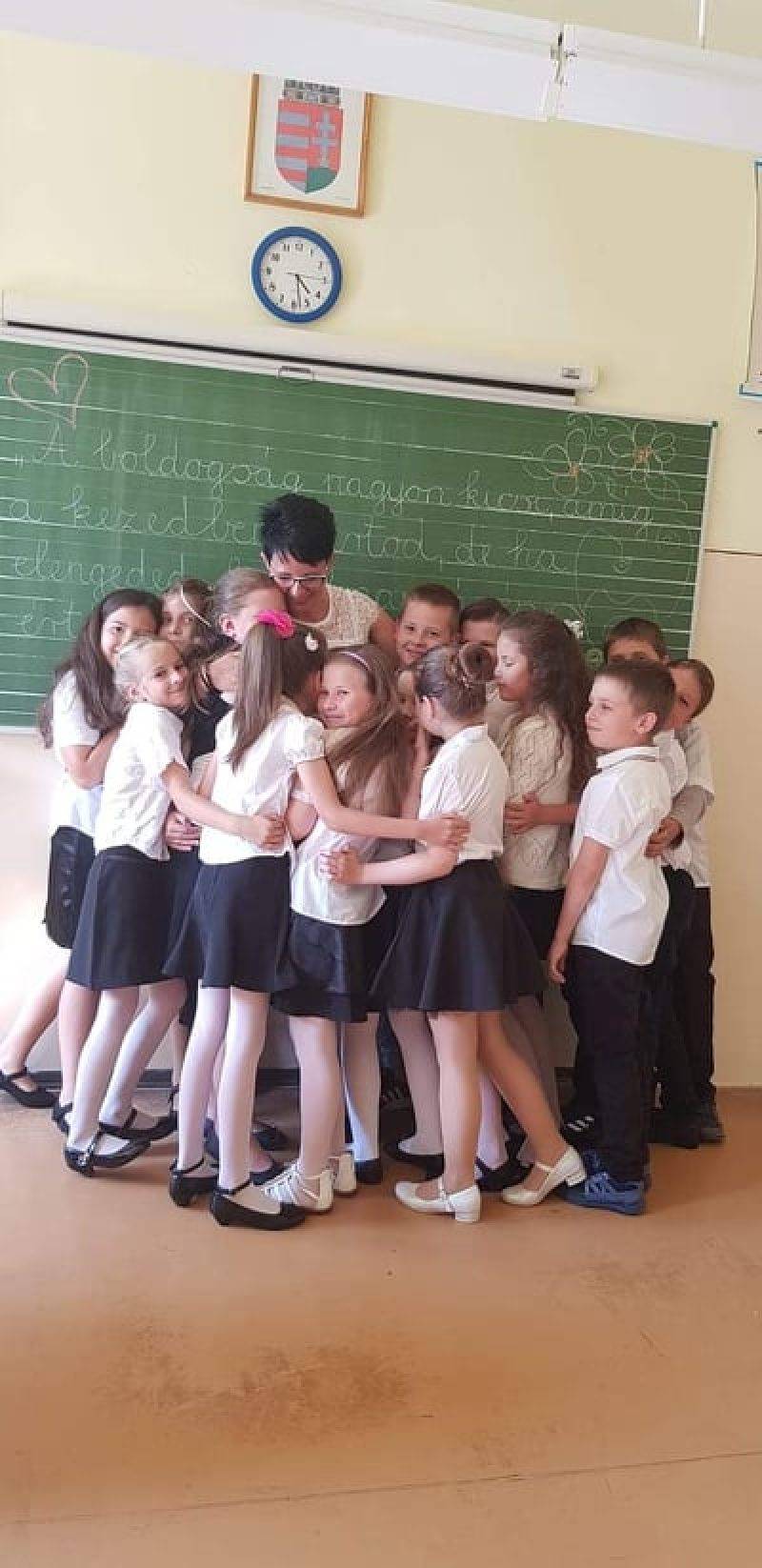 “A boldogság nagyon kicsi, amíg a kezedben tartod, de ha elengeded, hatalmassá és értékessé válik.” – Maxim Gorky ezzel az idézettel köszöntöttem a kis tanítványaimat és szüleiket a rendhagyó módon megrendezett bizonyítványosztáson. Mivel 2. osztályosok a kis manócskák, most először kaptak kézhez olyan bizonyítvány, melyben már jegyekkel értékeltük a sok munka eredményét! Nagyon szorgalmas kis csapat, hiszen az osztály fele kitűnő bizonyítványt vihetett haza. Ez a délután és a sok-sok izgalom után átvett jutalmak méltóképpen zárták le a tanévet. Minden kis manócska kapott egy elismerő oklevelet, melyben a kitartó munkáját és a sok szorgalmat köszöntem meg, ez egy kis apróság, de nagyon sok mosolyt csalt az arcocskákra. Kaptak ajándékba egy általam választott „boldogság idézetet” tartalmazó könyvjelzőt, melyre bármikor ránézhetnek és ismét újult erővel küzdhetnek meg az akadályokkal! A szülők is kaptak egy mosolygós boldogságidézetet, melyet az egész család közösen használhat, ha erre szükség van. a délutánt egy hatalmas közös öleléssel zártuk,ami már mindenkinek nagyon hiányzott!