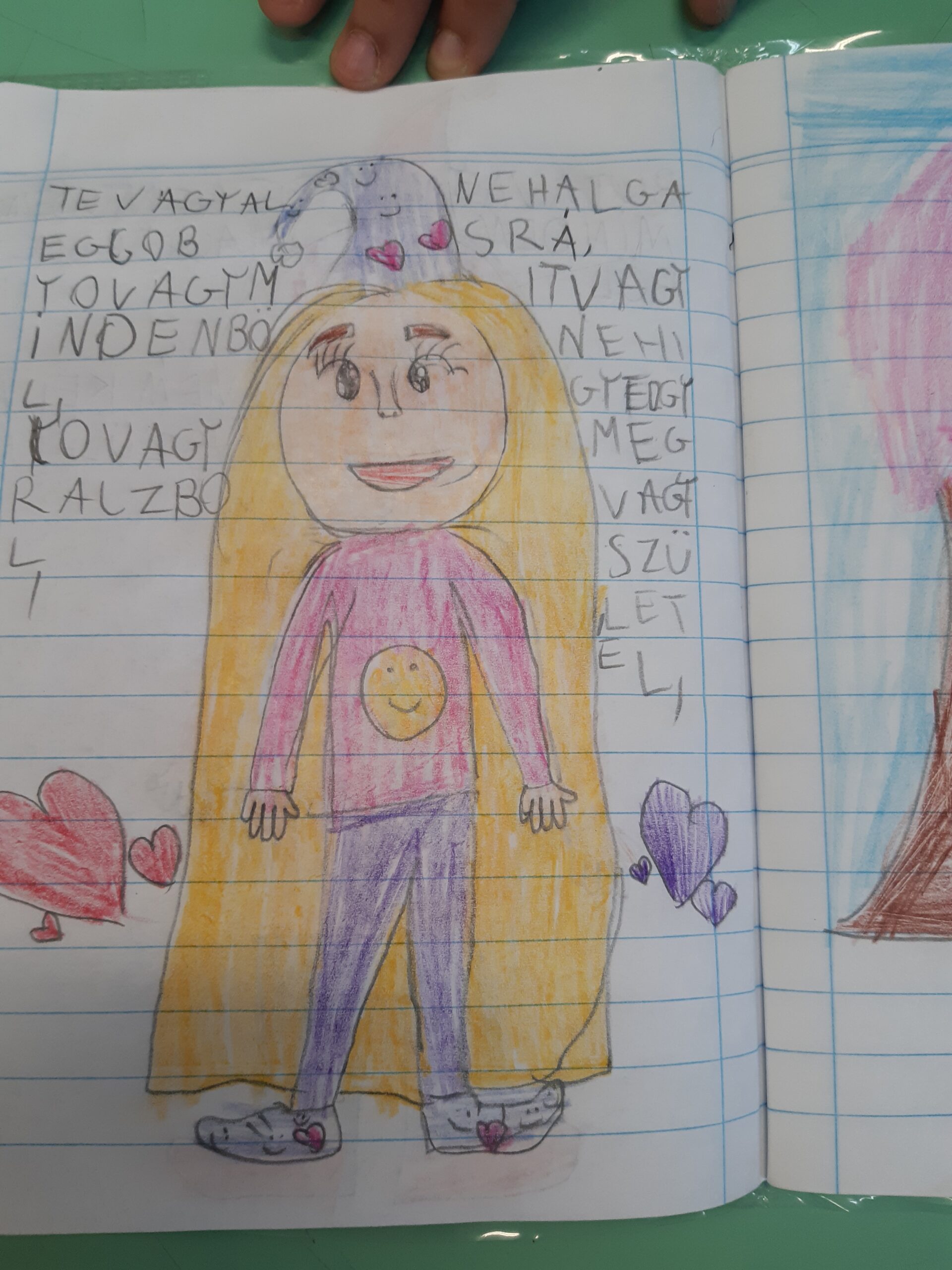 3. Majd le is rajzolták Szívmanót, s mellé írták a megerősítő gondolatokat, amelyet súghat a fülükbe. Igenis képesek változtatni a dolgokon, csak akarni kell. Neveket húztunk. s annak az illetőnek lett egy titkos barátja arra a napra.
