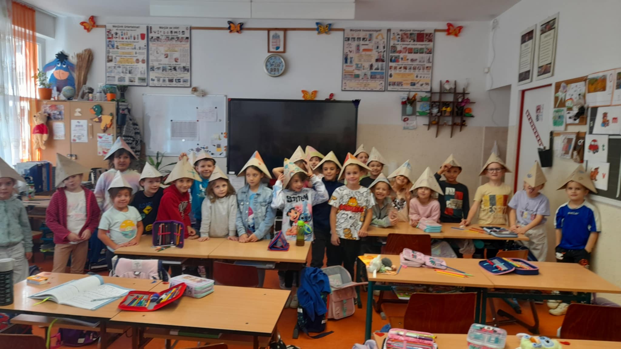 Elsősök vagyunk, most ismerkedünk Hálakapitánnyal és egymással.Gyakoroltuk a figyelmes hallgatást .Kipróbáltuk a mesélő kört. A Népmese napjához kapcsolódva lapbookot készítettünk csoport munkában.Pillanatkapitányhoz hasonlóan mi is elkészítettük a csákónkat.