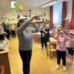 A foglalkozást relaxációval indítottuk. A gyermekek kézfogással, a tenger hullámzását imitálva mozogtak együtt, ami erősítette az összetartozás élményét és a csoportkohéziót. A közös ritmus megtapasztalása fejlesztette az egymásra figyelést, az együttműködési készséget és a ritmusérzéket. Ezt követően légzőgyakorlatokat végeztünk, majd meghallgattuk Bagdi Bella „Ellazulni jaj, de jó” című dalát, amelyhez kapcsolódóan mozgásos és relaxációs gyakorlatokat végeztünk. A rendszeresen gyakorolt légzéstechnika alkalmazása során megfigyelhető volt az önszabályozás fejlődése: a gyermekek egyre tudatosabban, fegyelmezettebben hajtották végre a feladatokat, a foglalkozás végére pedig láthatóan oldottabbá, nyugodtabbá váltak.