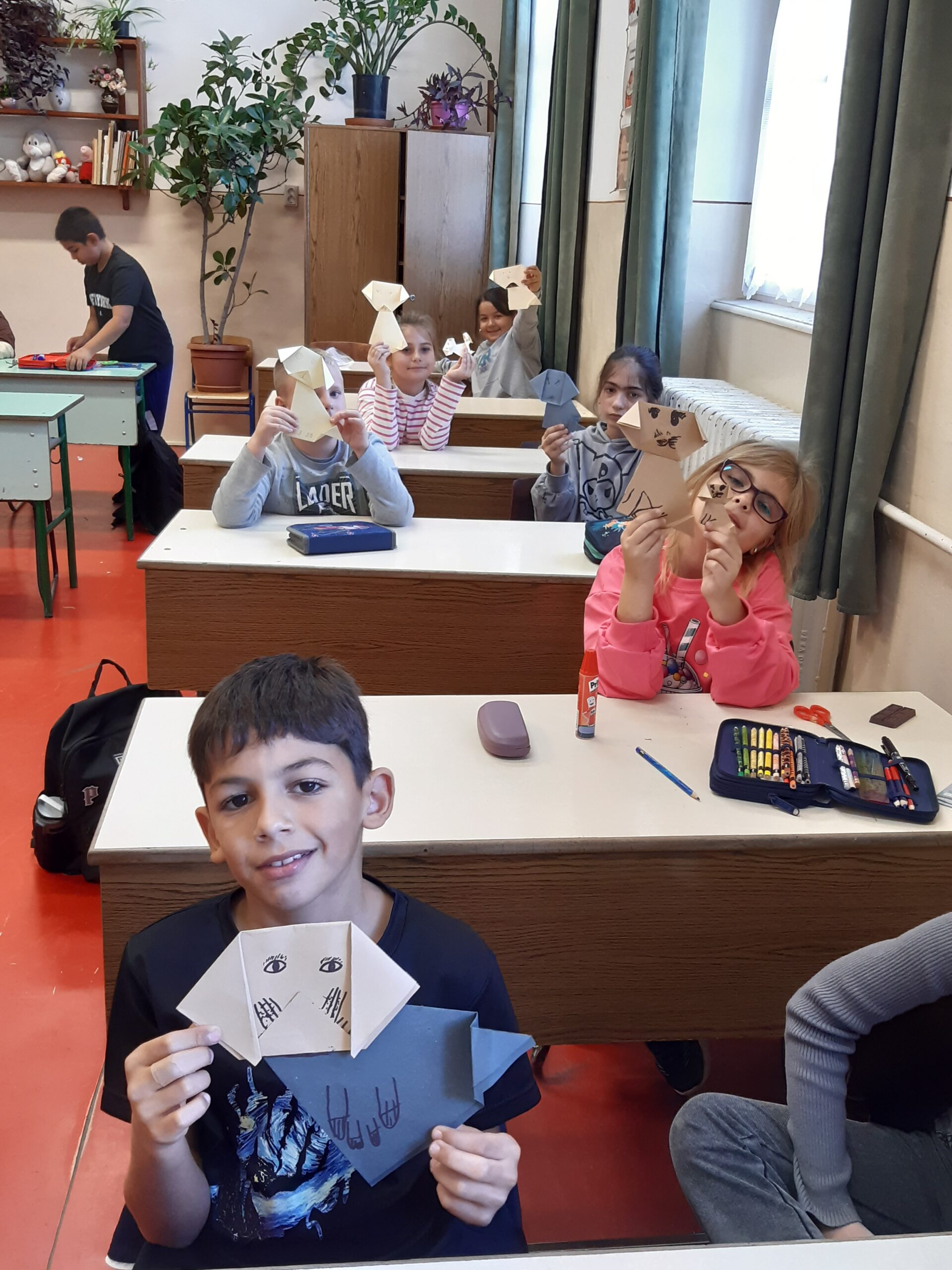 Októberben haladtunk tovább Pillanatkapitány történetével. Meghajtogattuk Kóborlót, majd megbeszéltük, hogy ő valójában a figyelmünket jelképezi. Néhény nap múlva már nemcsak én, hanem a tanulók is gyakran elkiáltották magukat, hogy ” Kóborló, gyere vissza!”