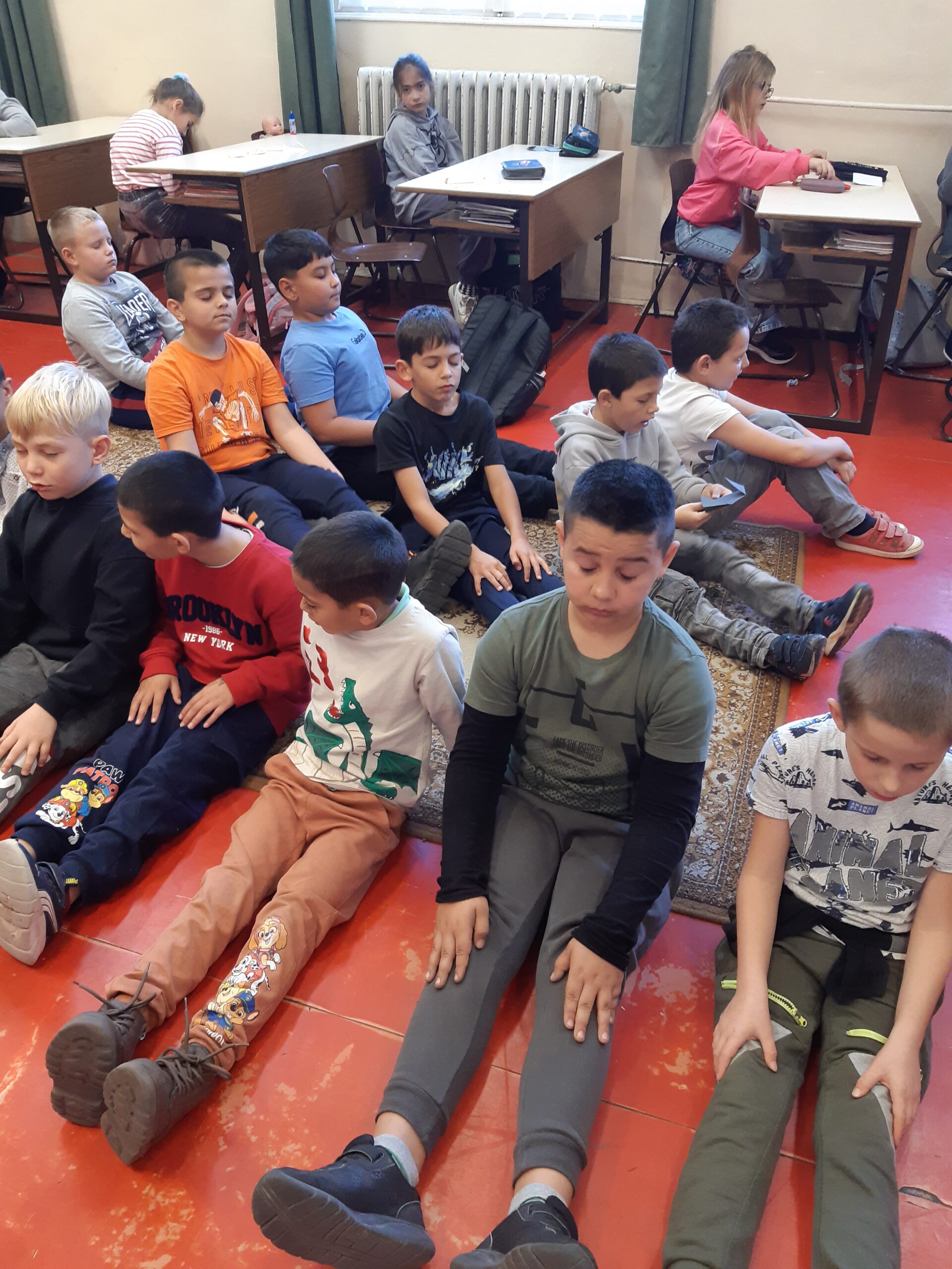 Kipróbáltunk sokféle légzőgyakorlatot. Azt tapasztaltam, hogy szükség van ezekre a gyakorlatokra, hogy csendet és nyugalmat teremtsek a folyamatosan nyüzsgő, zajos mindennapokban A gyerekek visszajelzései is azt mutatják, hogy igénylik, szükségük van rá.( A tengeri sziget nevű gyakorlat közben készített fotómat csatolom.)