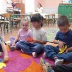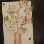 A csoportom vegyes csoport. Kis, középső, nagy. Úgy kezdtük a téma feldolgozását, hogy beszélgettünk a hála fogalmáról. A nagyoknak voltak okos meglátásai. / Hálás, hogy óvodába járhat, hálás, hogy anyukájával alhat, hálás, hogy az apukája haza megy és el jön érte az óvodába, hálás, hogy van étel az asztalon./Meghallgattuk a hónap zenéjét is. Először csak meghallgattuk, másodjára kértem, hogy figyeljék a szöveget, és együtt énekeljük. Még a kicsik is mondogatták a refrént. Eljátszottuk a leveles játékot is. Először egy levél, majd két levél, és utoljára három levél ment körbe. A játék vidáman hangulatban telt. Egy kisfiú homokozás közben talált egy falevelet. Fogta és azt mondta, hogy nekem adja. Kérdeztem, hogy miért? Válasz, mert szeretlek. Teljesen spontán történt. Az utolsó foglalkozás során a nagycsoportosok segítségével elkészült a Hálafa. A kezüket körberajzolták, színezték, kinyírták. A kicsik kezét körberajzoltam, ők színezték, én kinyírtam. Amikor feltették a fára a kis kezüket, mindenki elmondta, hogy miért hálás.