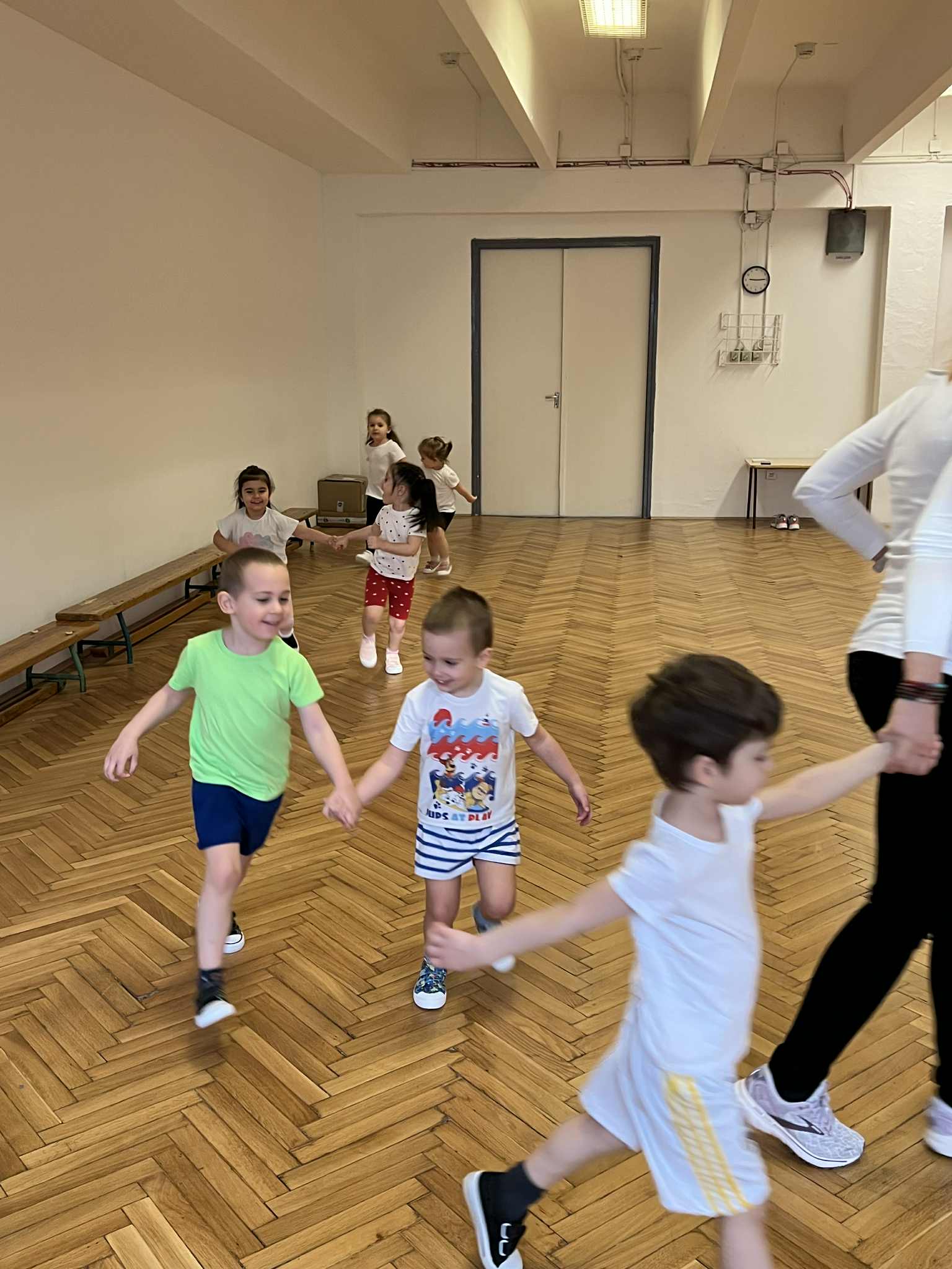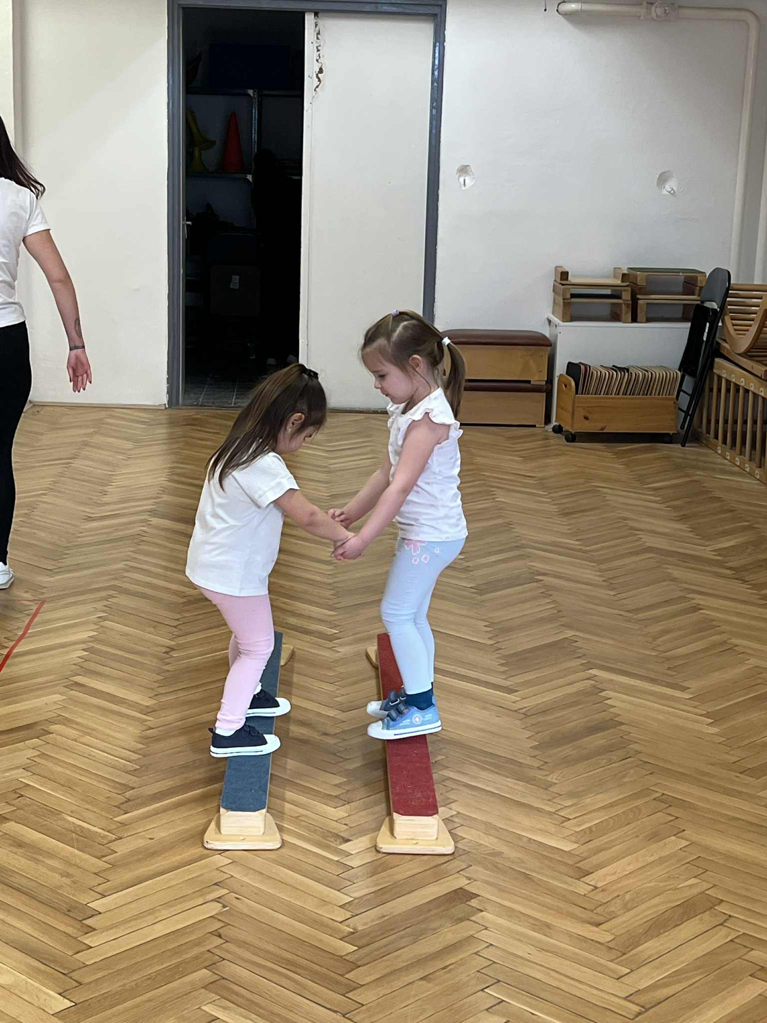 Páros játékokon keresztül mutattuk be, milyen együtt mozogni, együtt végigmenni egy akadálypályán, vagy megoldani egy feladatot. Érdekes kapcsolódásokat láttunk, attól függően milyen személyiségű gyermekek találtak egymásra. Ahol az egyik gyorsabb, dinamikusabb volt és párba állt egy lassabb, megfontoltabb gyermekkel érdekes mozgást és megoldást figyeltünk meg. Ahol két hasonló gyermek állt párba, láthattuk a nagyon jó közös dinamikát és problémamegoldást, együttműködést.