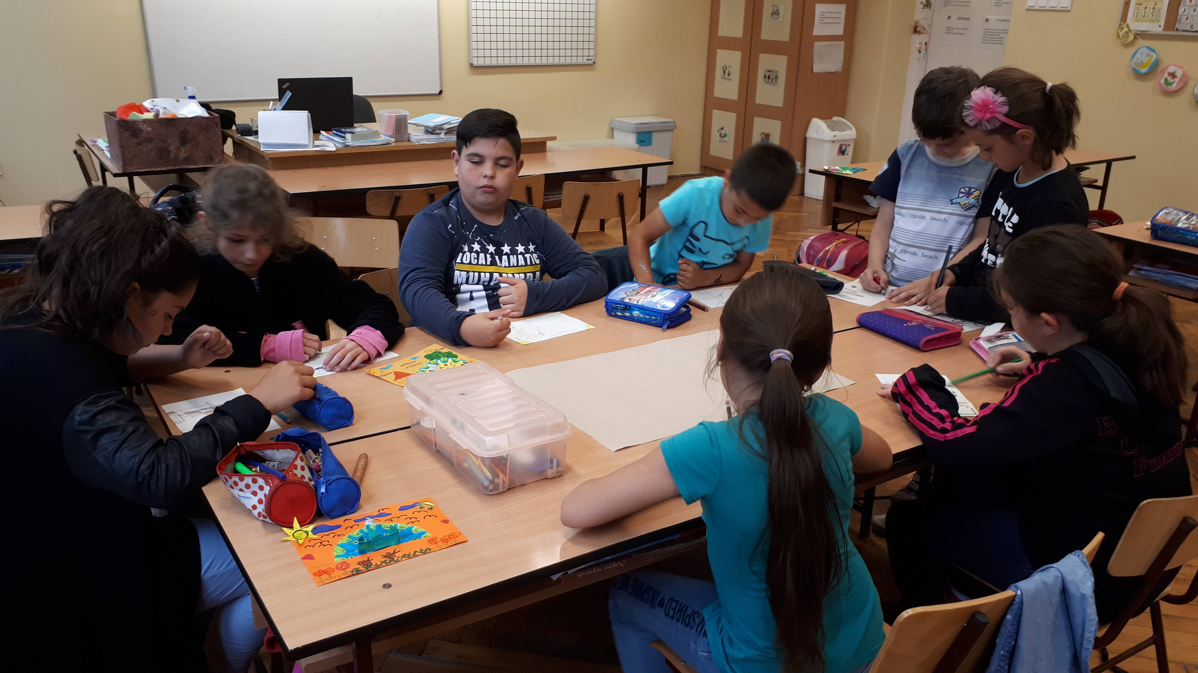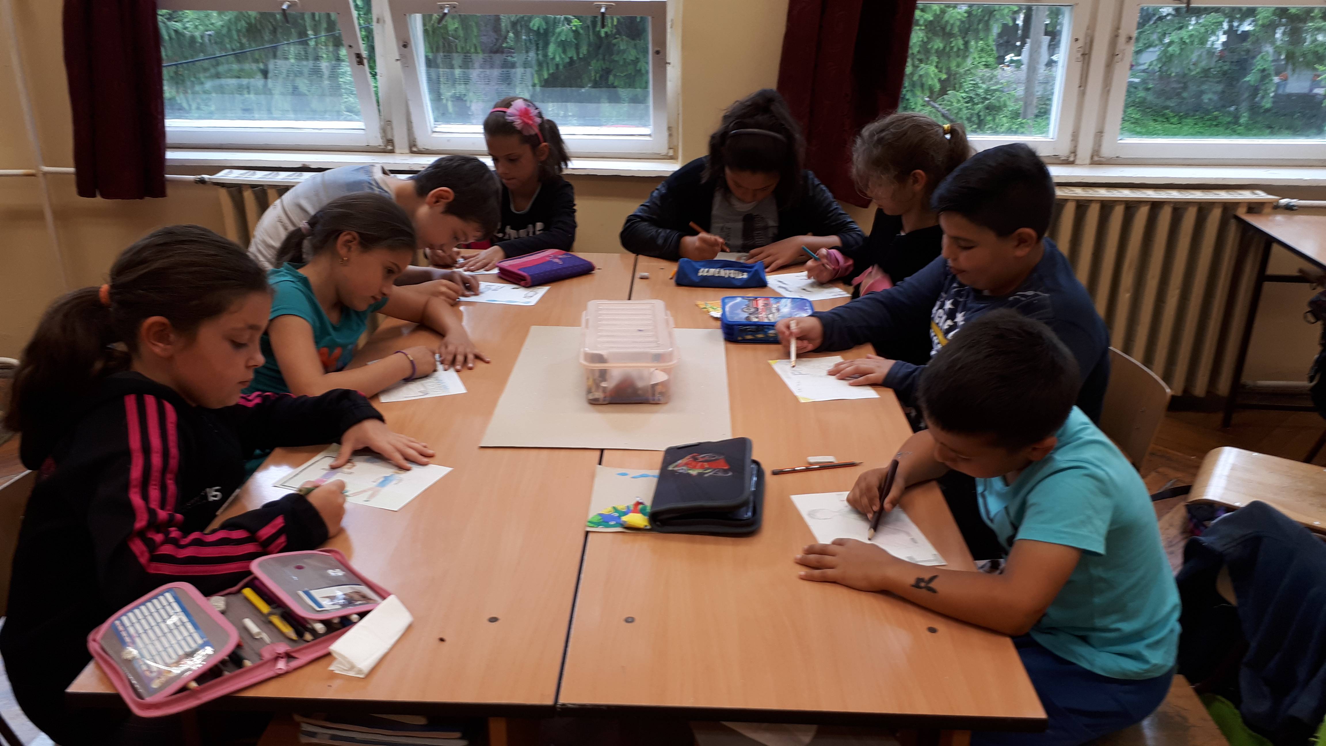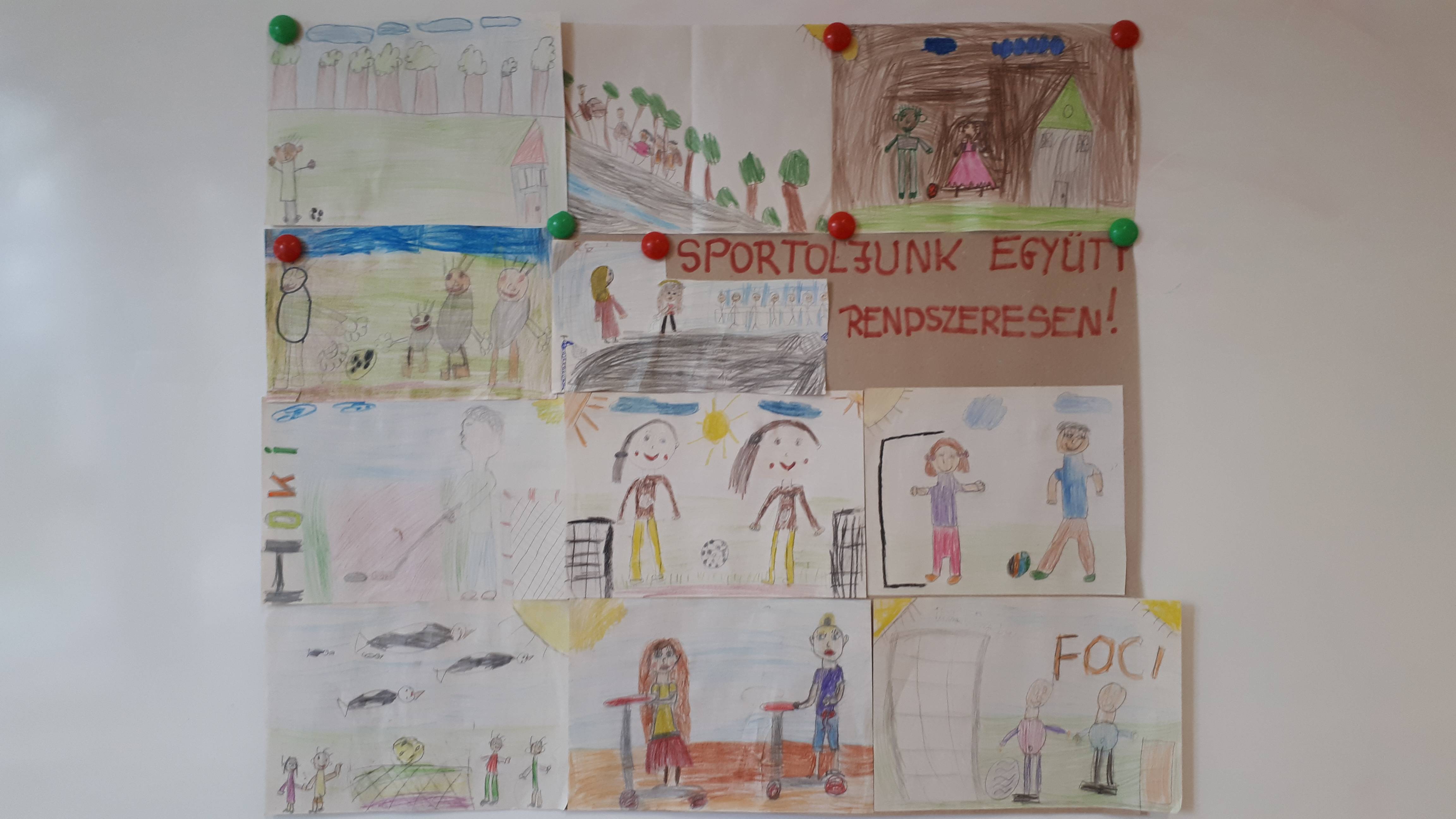A versenyfeladatok közül a plakátot választottuk. Mindenki önállóan rajzolta kedvenc sportját és azt az embert, aki számára a példakép abban a sportban. Az egyéni rajzokból állítottuk össze a plakátot, ami az egészséges életmódra hívja fel a figyelmet.
