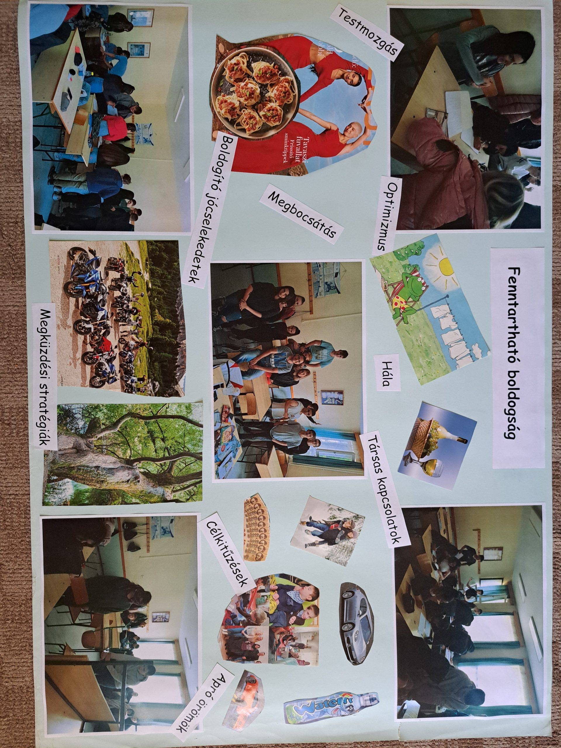 A feladatok közül a plakátkészítést választottuk, amihez lelkesen álltak hozzá. A feladat elvégzése során megbeszéltük az átélt fázisokat, és a tanulók is észrevettek a témák között egy kisebb hullámzást. A tanév végére elfáradtak ugyan, de a tanultak szépen lassan elkezdtek beépülni a mindennapi életükbe.